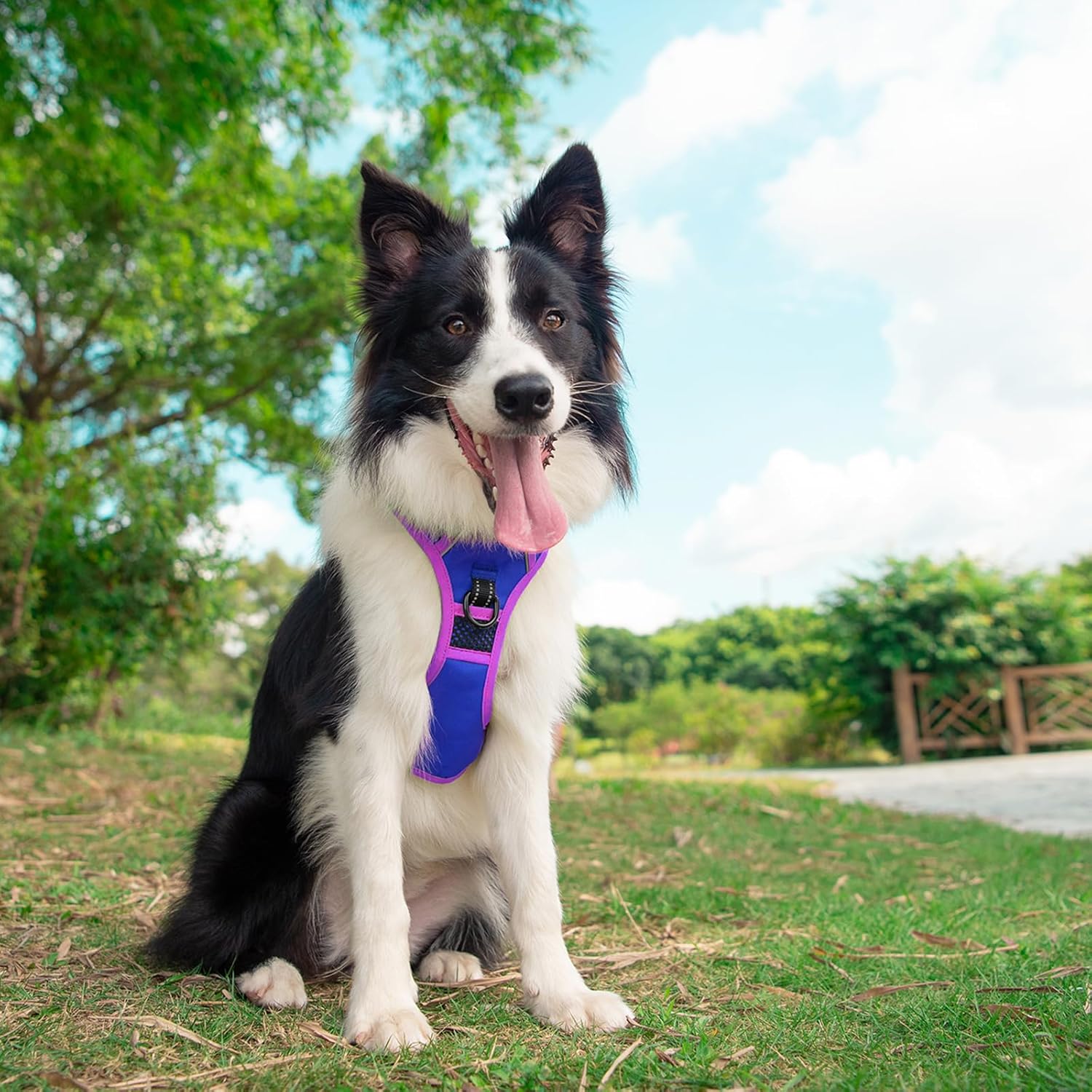• [EASY TO PUT ON & TAKE OFF] This harness is easy to put on and take off with its 3 Fast-release Buckles. This dog harness has 3 snap buckles( One is on the neck, two are on the chest), NO NEED go through dog’s head. This will let your dog loves to wear harness!