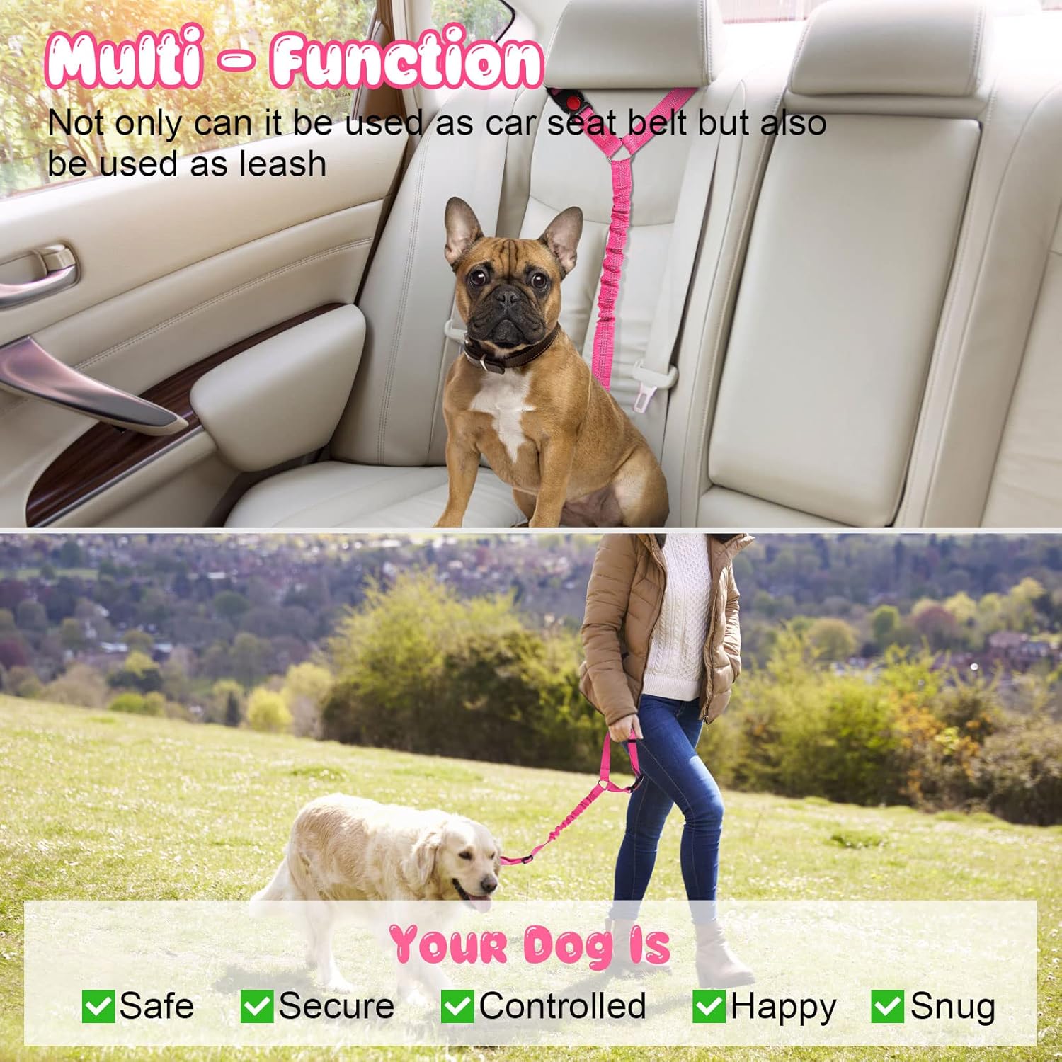 • PRACTICABILITY: Our durable leash Not only can use for car ,but also can be converted to a traditional hand-held leash whenever you need. In addition,It is easy to have the pets secured to a tree or other strong post to keep pets safe when you need.