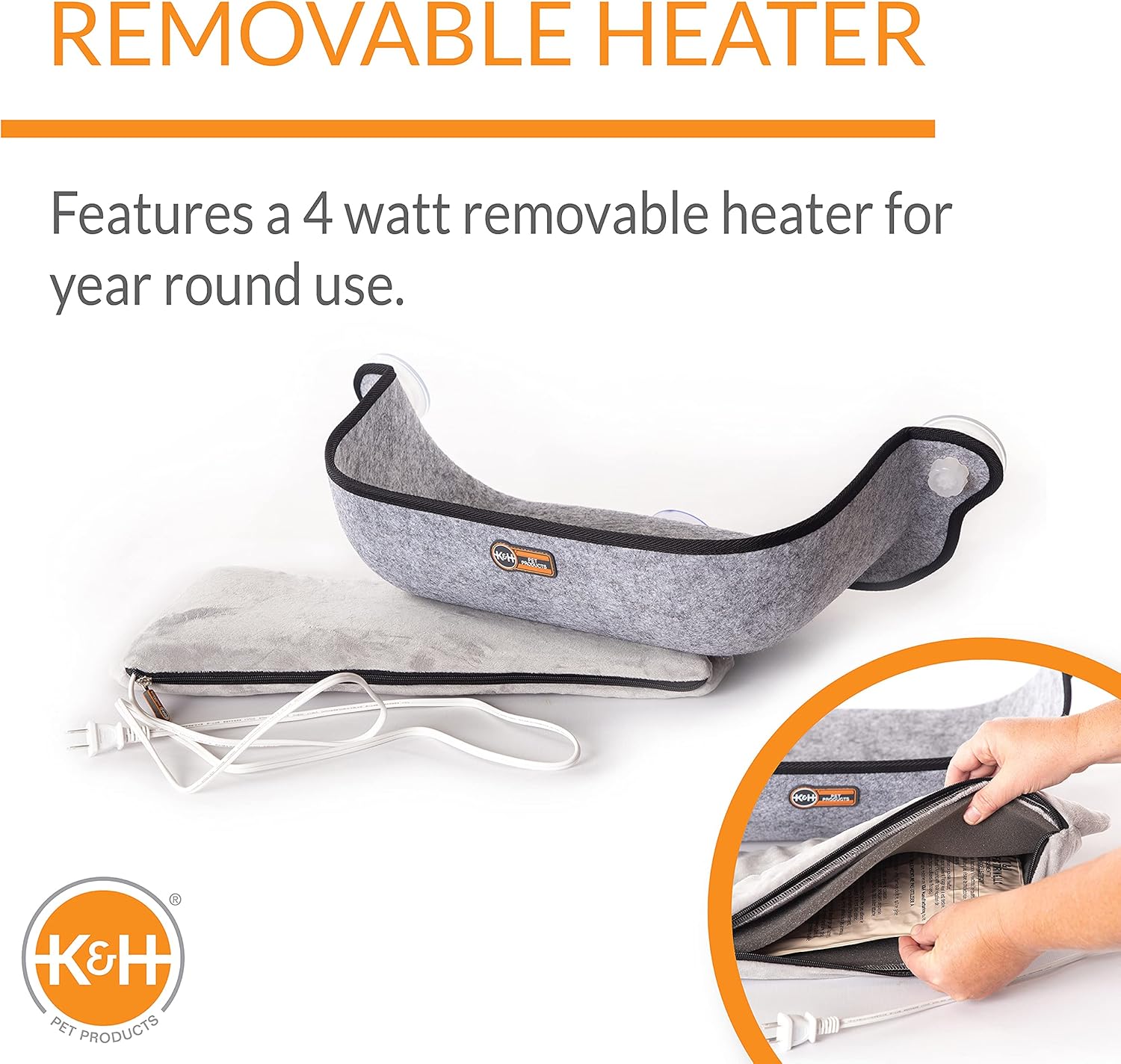 K&H Pet Products EZ Mount Thermo-Kitty Window Bed Extra-Deep Gray 27 X 10 X 11 Inches