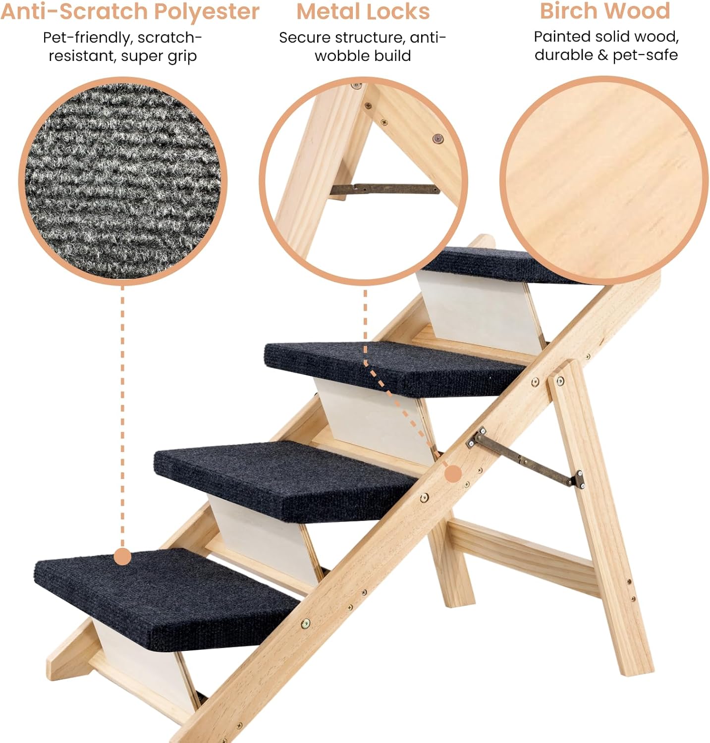 • 3. Built for Safety and Comfort Crafted from solid birch wood with anti-slip polyester and metal locks. No wobbling, no gaps—just a secure and stable step every time.