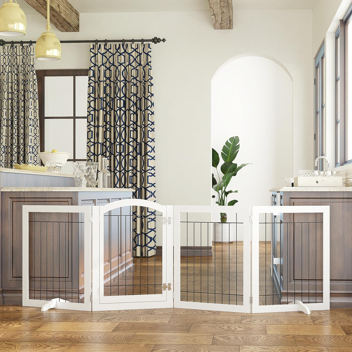 • DURABLE & ATTRACTIVE: Those Pet Panels Constructed from A Durable Solid Wood Frame and Strong Mental Wire Interior. It's Perfect For Especially Large Dogs or A Puppy Who Like To Chew On Everything, Yet The Pet Gate Fit Beautifully in Any Home DeCor.