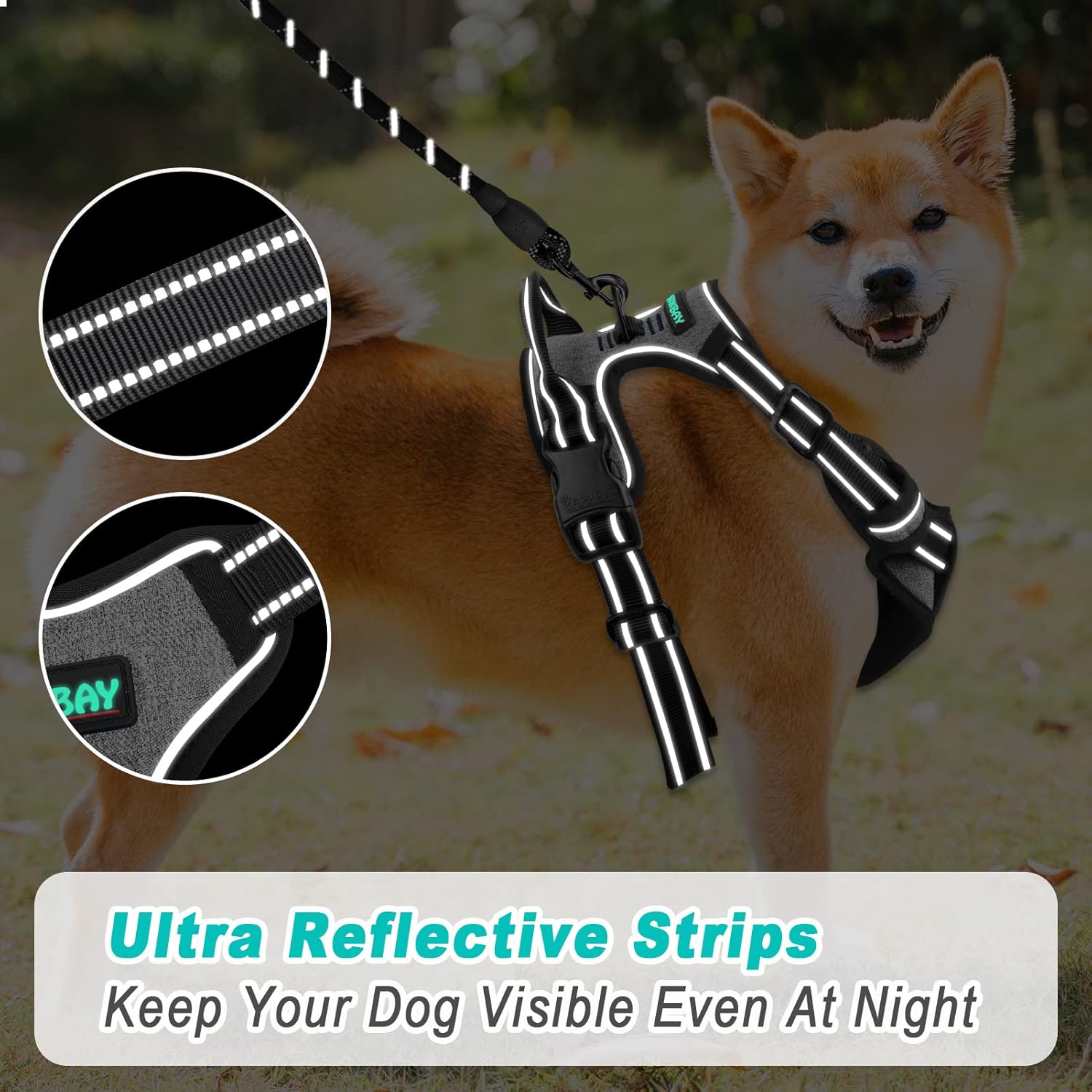 • LUMINOUS REFLECTIVE STRIPS to keep your dog safe and visible at night.
