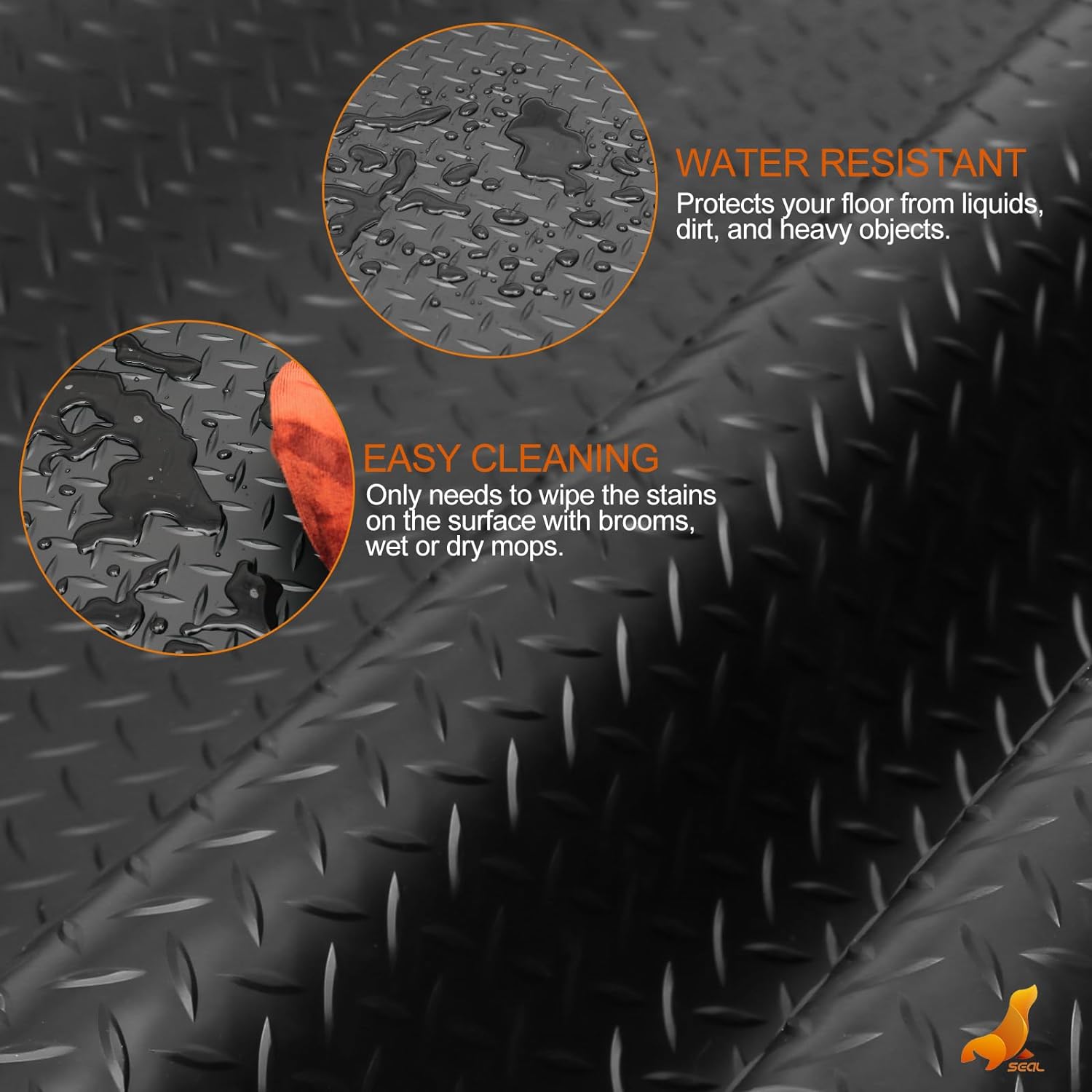 • [Protect Your Floors Like Never Before] - Keep your garage floor looking new with SEALโ€™s mats. Their special diamond plate design makes sure you wonโ€™t slip, giving you a safe way to walk in and out. These mats stop all kinds of damage like scratches and spills from ruining your floors, offering full coverage.