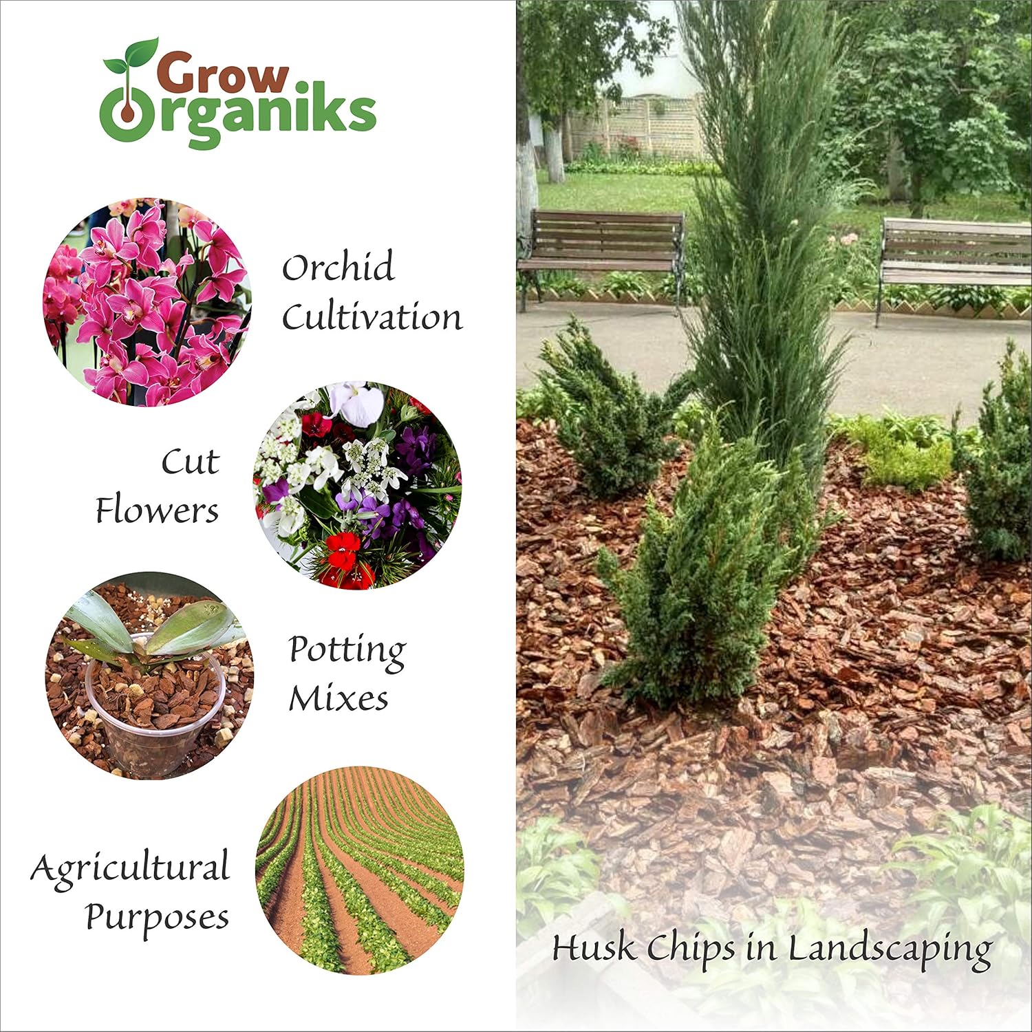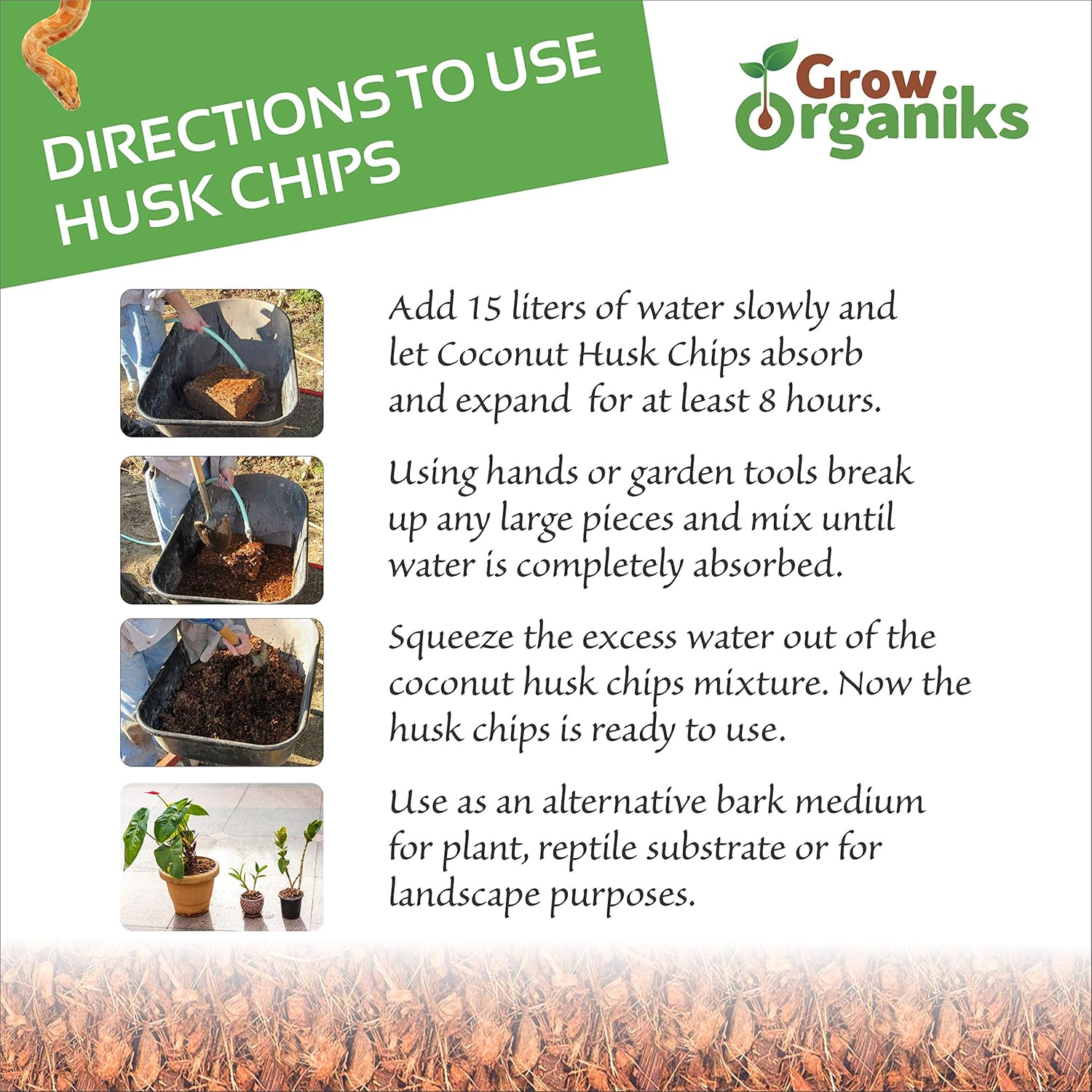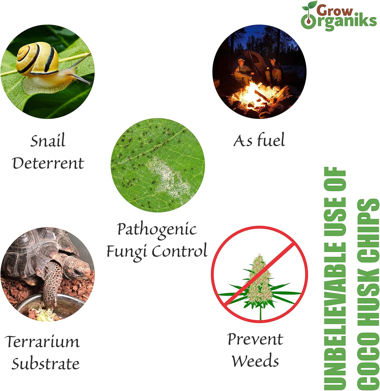 • [๐Ÿ100% Natural & Biodegradable] Grow Organiks Coconut Husk chips are cut pieces of the husk of the coconut compressed into 11 lbs.Coconut husks are a sustainable alternative to other mulches. Our Organic coco chips are best suitable for growing plants, and also perfect for reptile substrate.