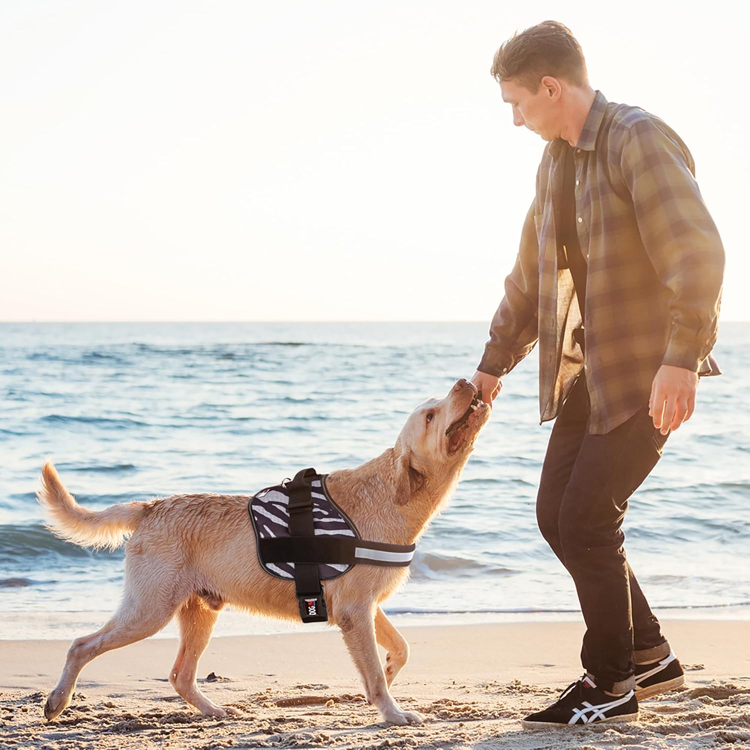 Dogline Dog Harness, Reflective No-Pull Adjustable Vest with Handle for Walking, Training, Breathable, No - Choke Harness for Small, Medium or Large Dogs Room for Patches Zebra Black/White M 22"-28"