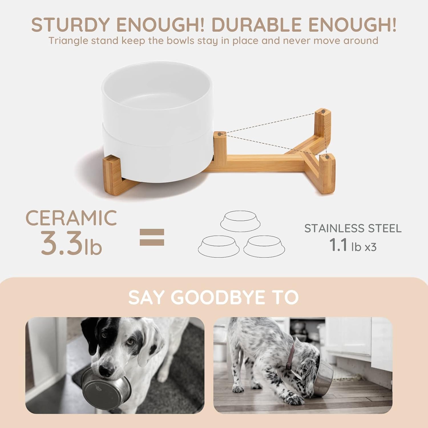 SPUNKYJUNKY Ceramic Dog and Cat Bowl with Wood Stand Non-Slip Matte Glaze Weighted Food Water Set for Cats &Small Dogs 13.5 OZ