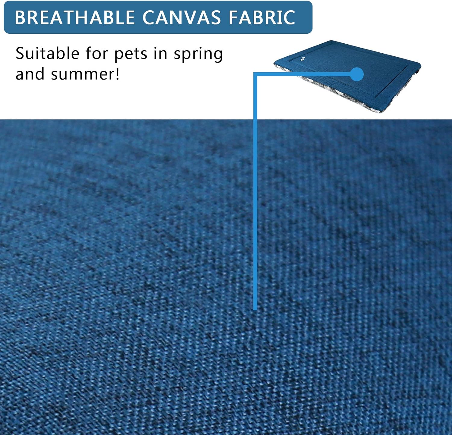 • Winter side and Summer side-This pet mat is reversible designed: one side surface is made of soft self warming plush, which is perfect for your pets in cold season(s), while the other side surface is with quality breathable canvas, which is ideal for your pets in hot season(s).