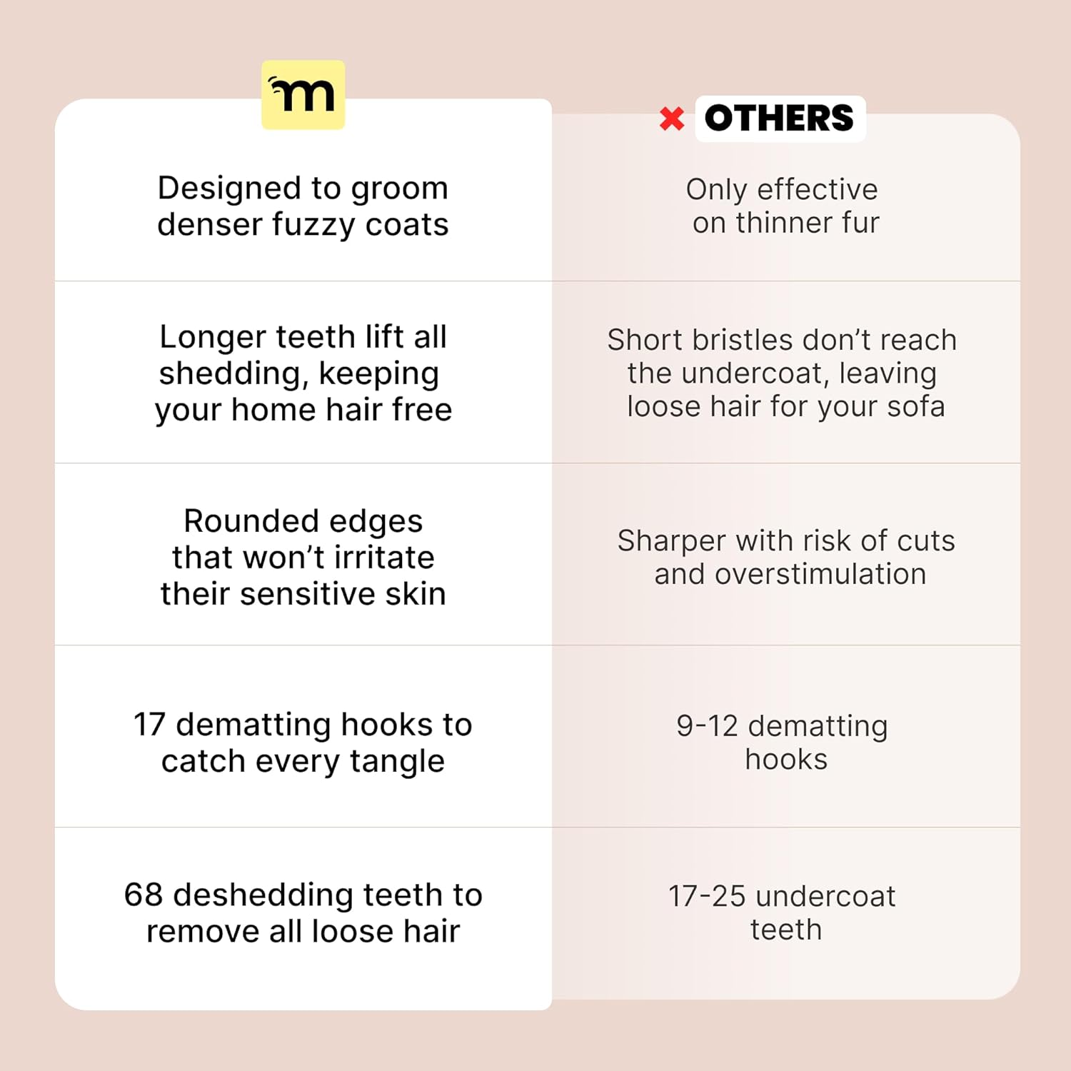 • Magic Undercoat Care: Conquer your pet's undercoat with ease using the undercoat rake. This cat dematting comb loosens tangles and knots effortlessly, making it ideal for long-haired cats with double coats. A vital cat grooming tool for any grooming kit