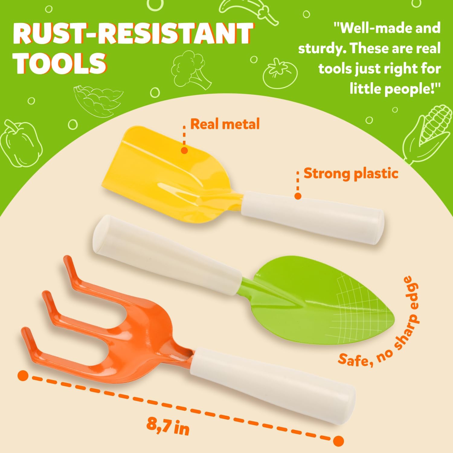 • REAL TOOLS, PERFECT FOR LITTLE HANDS – Unlike flimsy plastic sets, these real metal tools are just the right size for kids! “My 5 and 3-year-old love digging in the dirt just like grown-ups!”