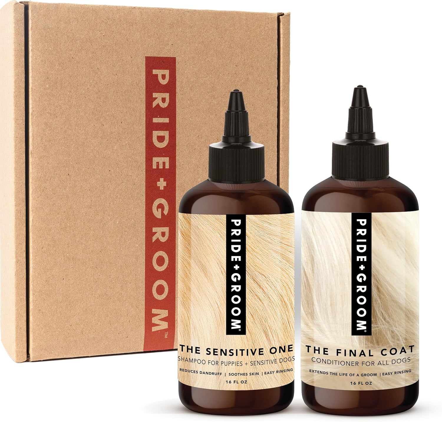 • PRIDE+GROOM BOX SET: Beautiful gift box that includes THE SENSITIVE shampoo and THE FINAL COAT conditioner packed with essential oils & gentle, soothing ingredients for sensitive coats and skin.