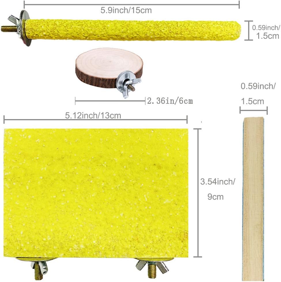• SAFETY WOOD MATERIAL : Our bird perch are made of nature wood with high quality quartz sand and safe . Screw and spacer with food grade 304 stainless steel, sturdy for use
