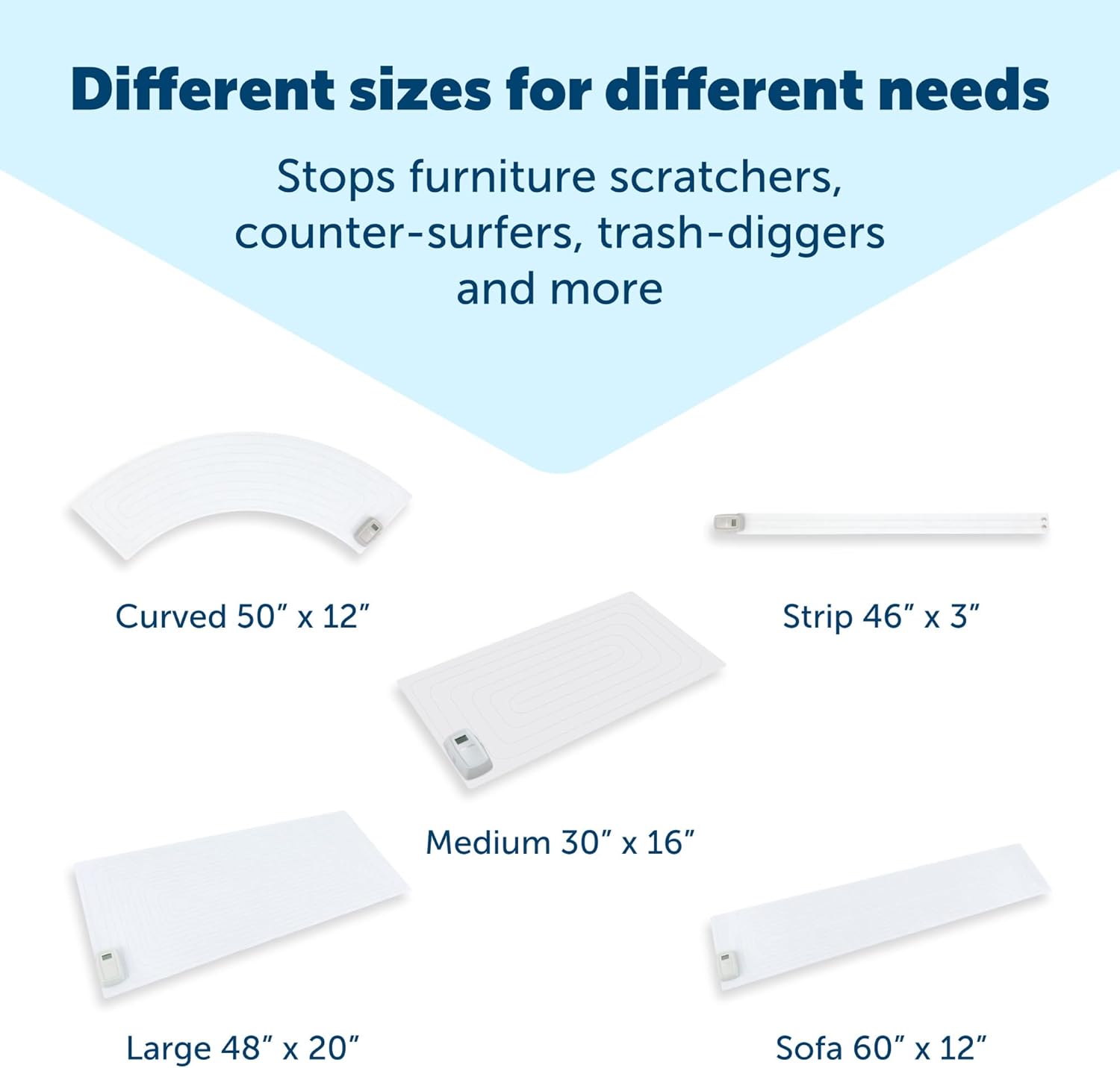 • Training Mat: Place ScatMat on countertops, the couch, in doorways or near trash cans to teach dogs and cats which areas are off-limits; When your pet steps on the mat, they will feel a safe yet startling correction to deter them from restricted areas
