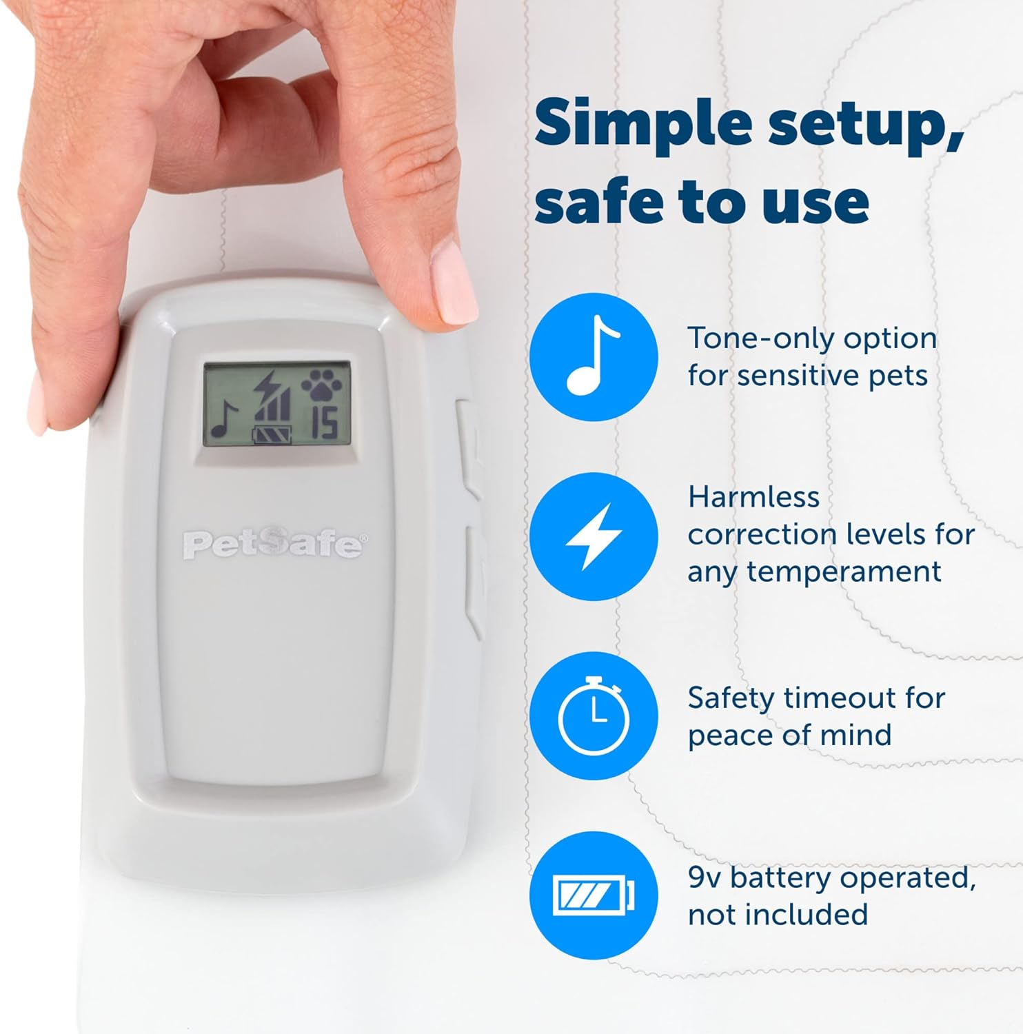 • Easy to Use: Battery-operated controller attaches to training mat and features an LCD display that shows battery level, correction level and a counter so you can see how many times your pet steps on the mat; 9-volt battery required (not included)