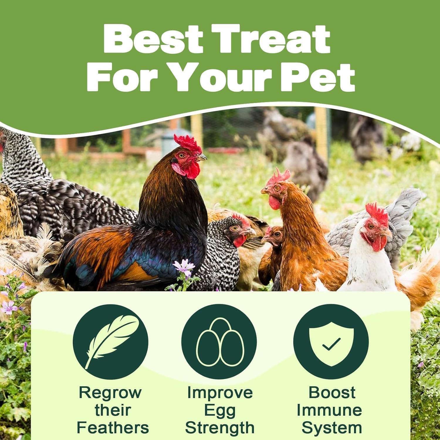 • ๐Ÿ”High Calcium Treats For Hens - Black Soldier fly larva contains 45% Protein, 5% Calcium and the rich source of vital nutrients. The extra calcium(more than dried mealworms) helps your flock lay better eggs in and out. The eggs are much firmer and whites are thicker that can hold the yolks up high and round. The eggshell appears to be clean and strong.