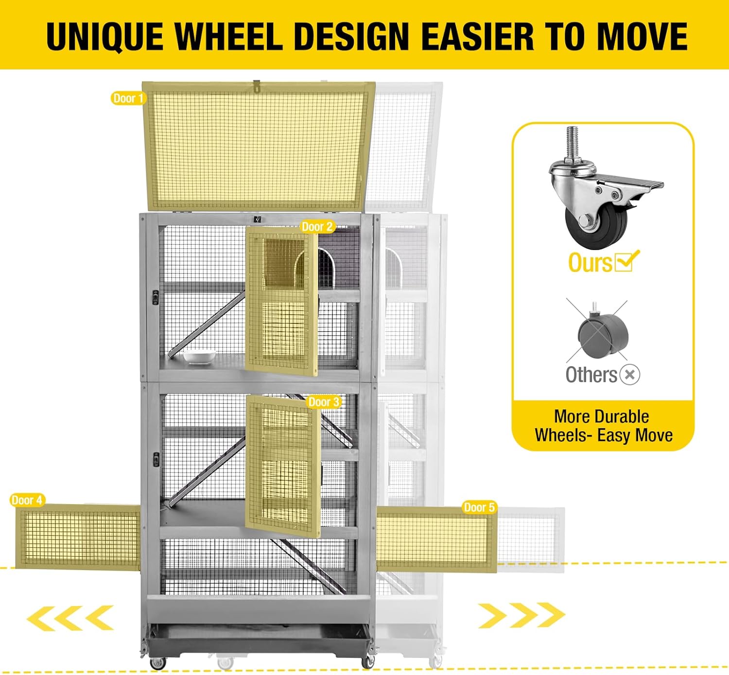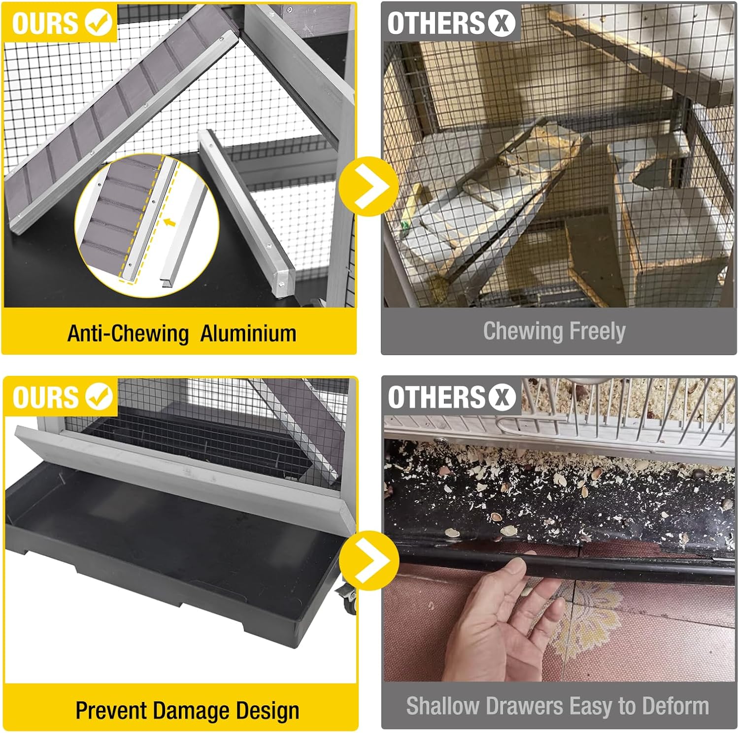• Upgraded Deluxe rat cage comes with 5 Levels connect with 4 ramps provides spacious room for exploring and climbing, the small resting house making much fun for your pets
