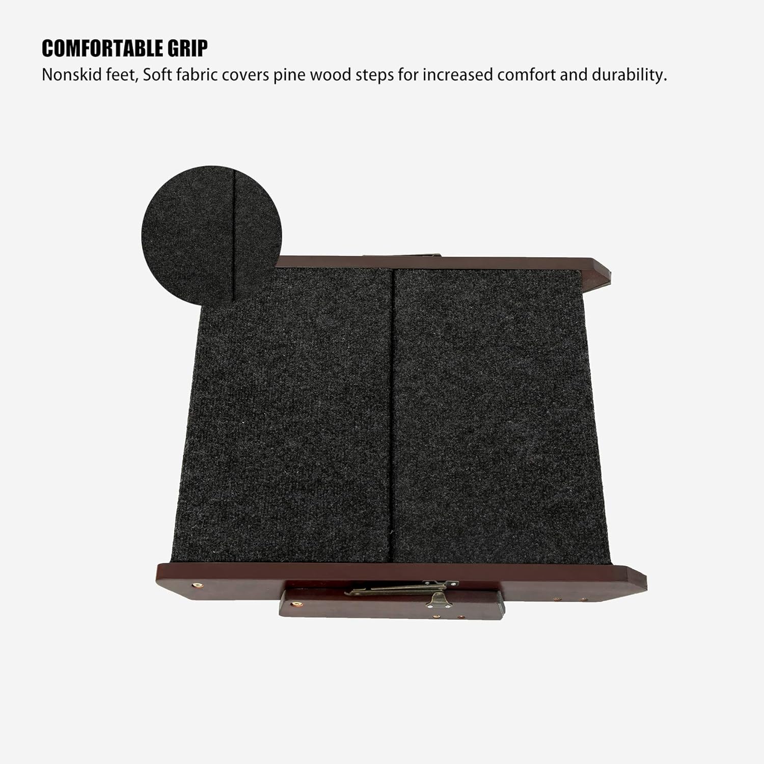 • COMFORTABLE ACCESS:Nonskid feet, Fabric covered ramp and stairs provide traction for your pet's paws. The grip carpet is designed to keep your pet from slipping when on the ramp.