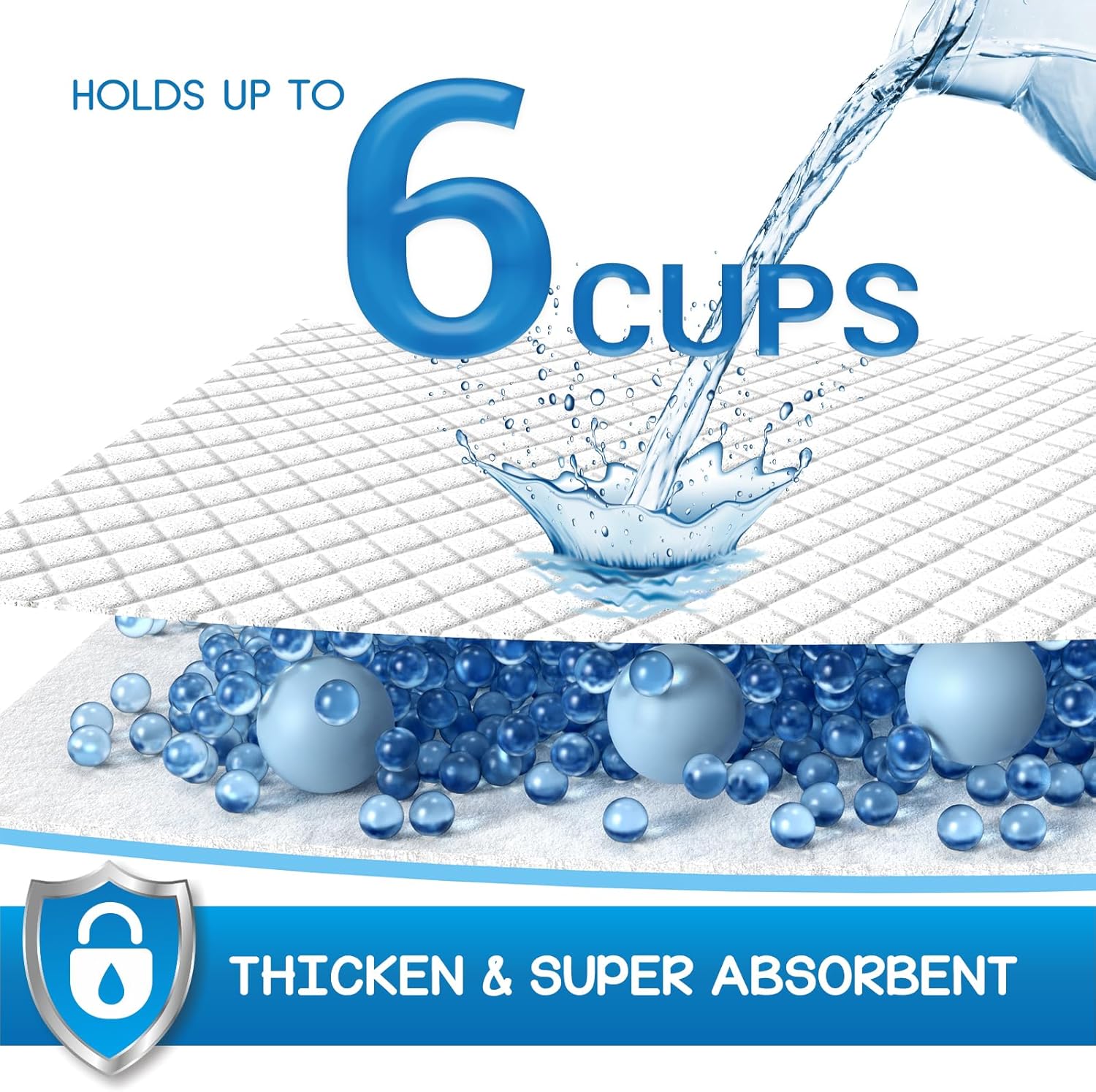 • 6-Layer Leak-Proof System: Advanced 6-layer construction features a diamond-quilted top layer for rapid liquid direction, a super-absorbent polymer core that locks away moisture as gel, and a leakproof backing to guarantee full protection for your floors