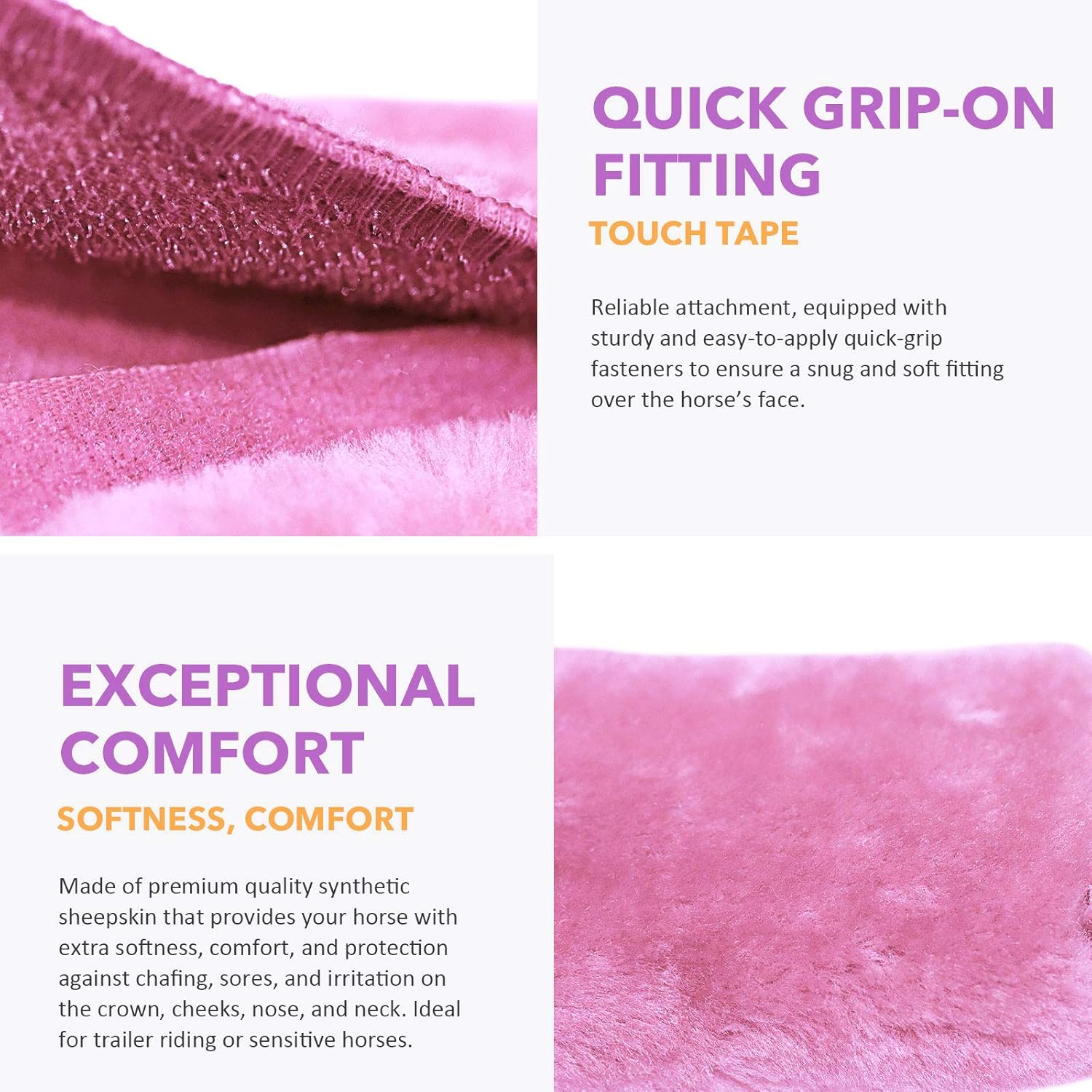 • EXCEPTIONAL COMFORT: Made of premium quality synthetic sheepskin that provides your horse with extra softness, comfort, and protection against chafing, sores, and irritation on the crown, cheeks, nose, and neck. Ideal for trailer riding or sensitive horses.