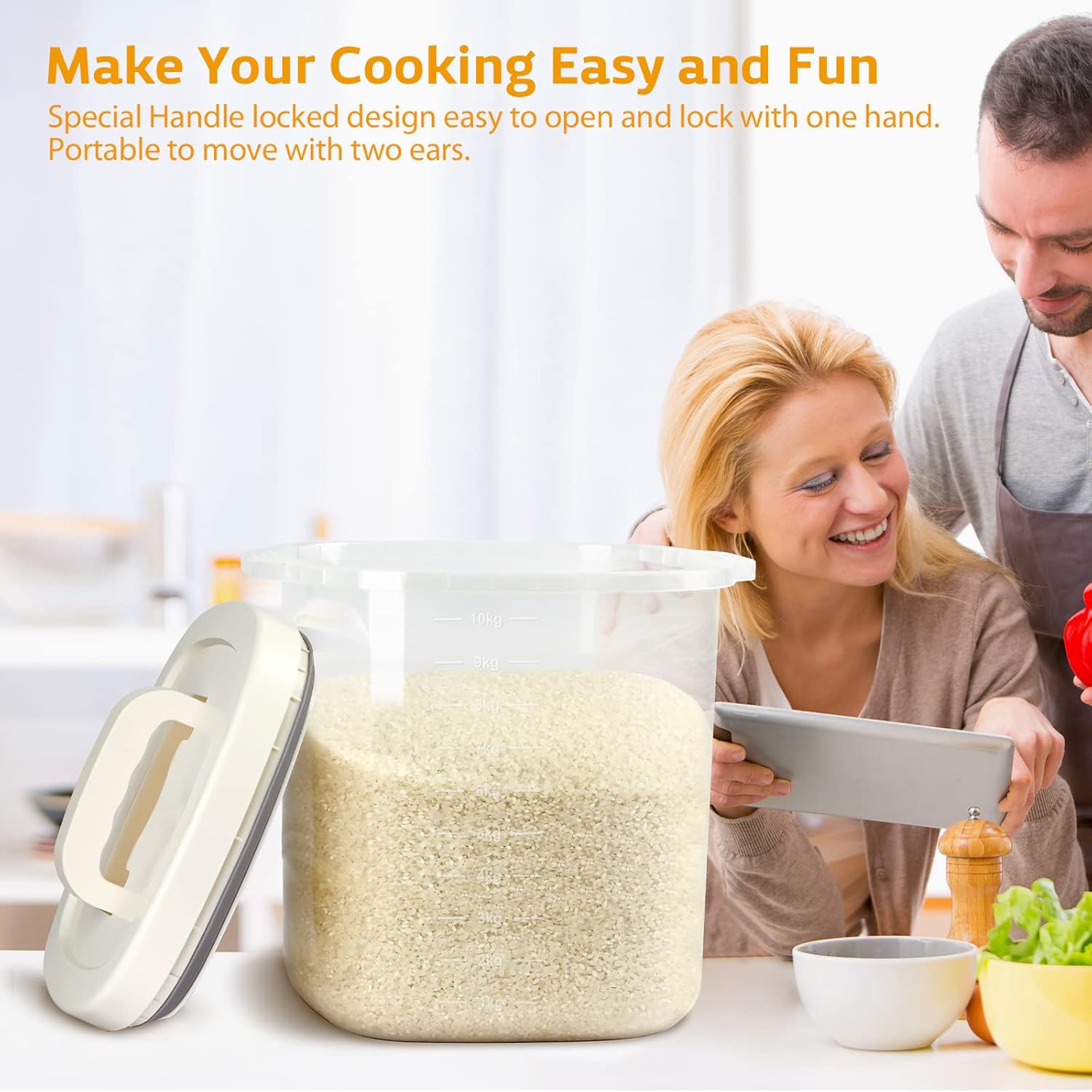 • LARGE STORAGE CONTAINER: UPPETLY large food storage container is big enough to store 20lb rice and 15lb dog food which offer you substantial size. It's perfect for storing flour, sugar, oatmeal, rice, baking supplies, and pet food