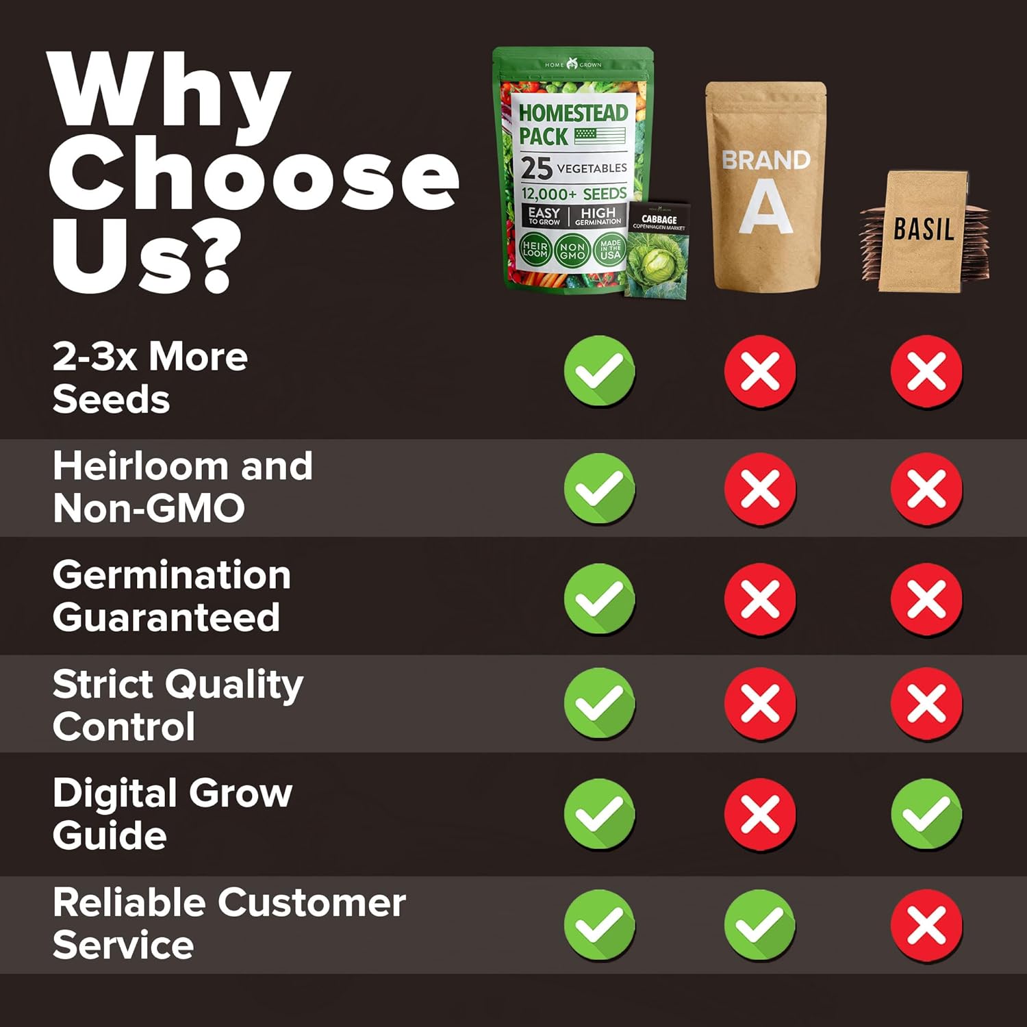 HOME GROWN ๐จ๐ฆ๐ ๐ฃ๐ฅ๐๐ ๐๐จ๐ 25 Heirloom Vegetable Seeds 12,000+ ๐ก๐ข๐ก-๐๐ ๐ข Survival Garden Seeds Kit, High Germination Tomatoes Carrots Beans Kale Peppers, Giftable Indoor Outdoor Planting Set