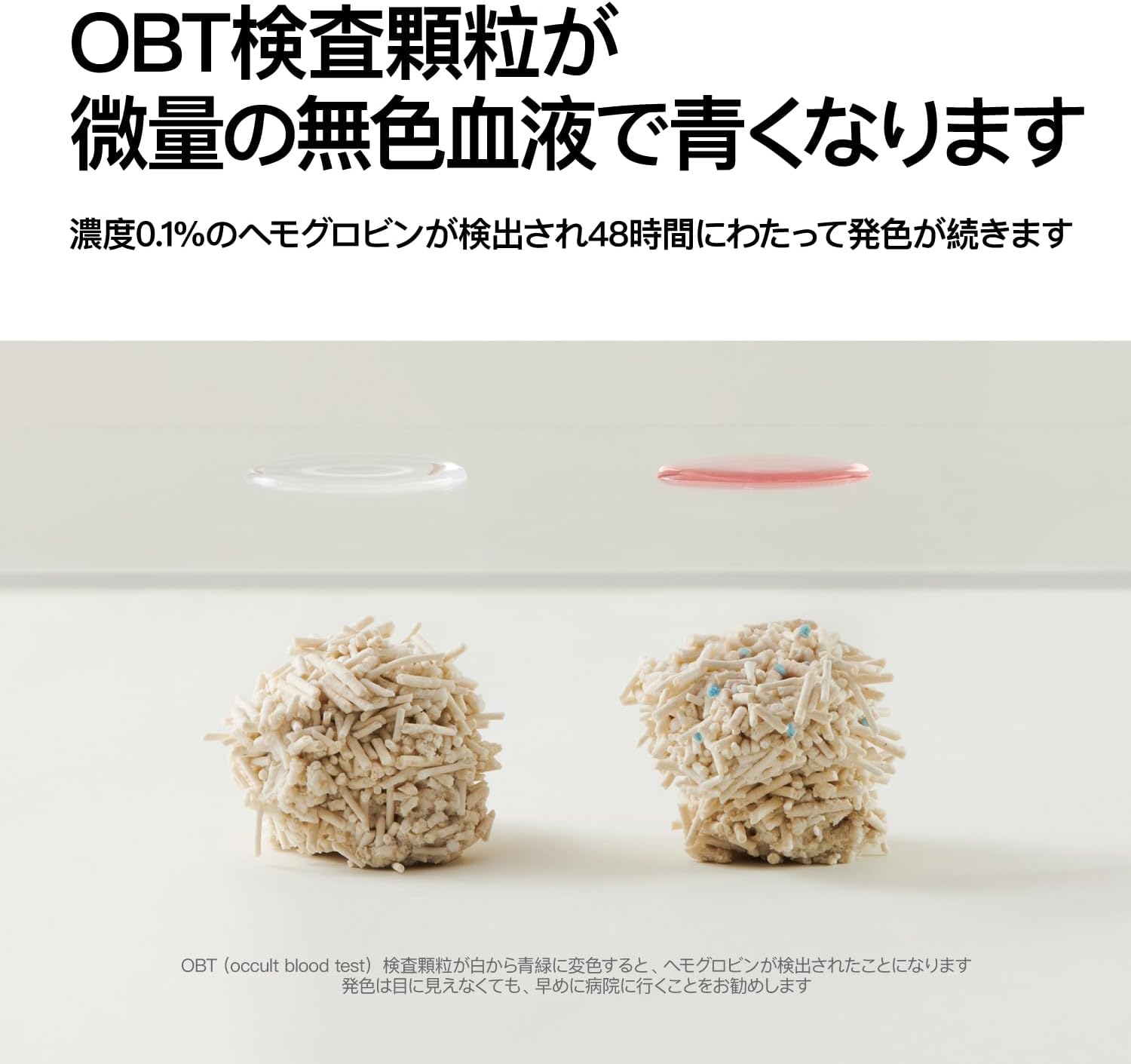 • 【Attention】 1.Direct exposure to hard light or friction with metal would invalid the detection function of the occult blood test particles. Please avoid such situations.2.Mineral substance contained in bentonite would affect the detection performance. Do NOT mix the product with other cat litter. 3.The vacuum design is only to facilitate its transportation and storage, and air leakage does NOT compromise the use. If you DO mind, please contact us.