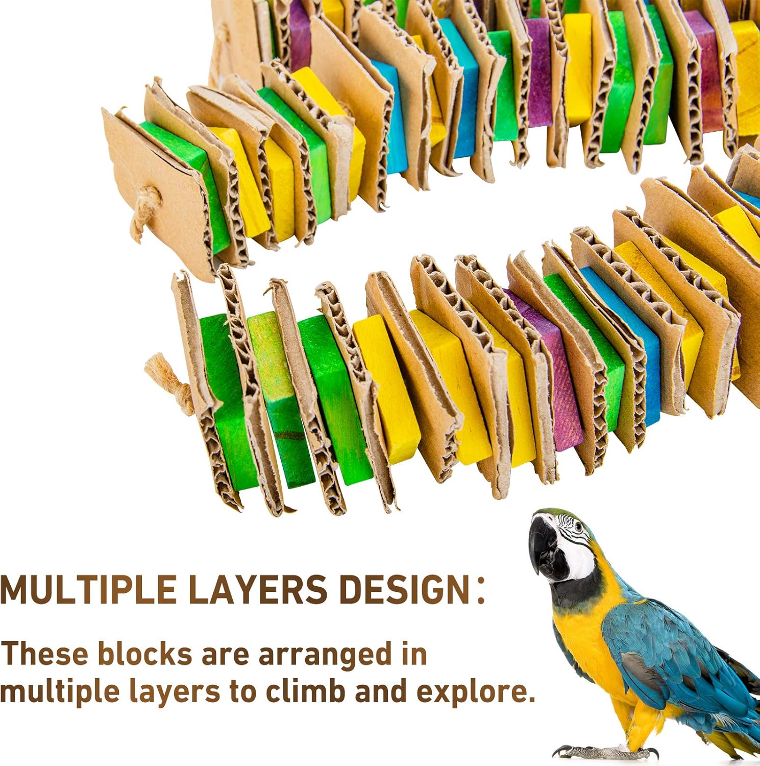 • 【KEEP YOUR BIRDS HEALTHY】--Parrot's beak keeps growing. It will affect the ability of the parrot to eat and damage its health if the beak is too long and not sharp. Our bird toy is suitable for chewing and gnawing, which can keep your parrot's beak shaped, helping them grow healthily.