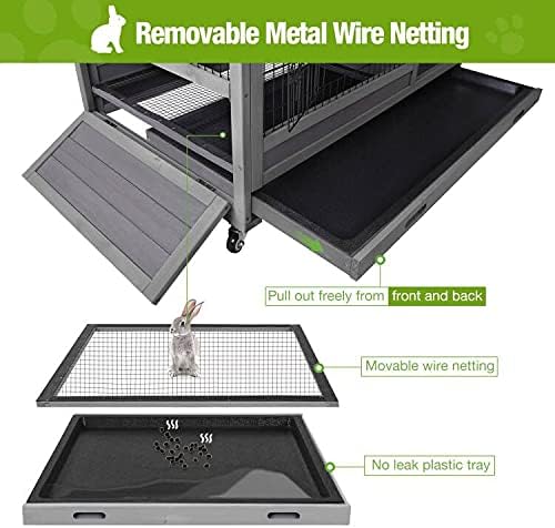 • Bunny hutch with four strong metal wheels to quickly move the small animal cage indoor outdoor, 2 of them are brakes to fix well and keep safe.