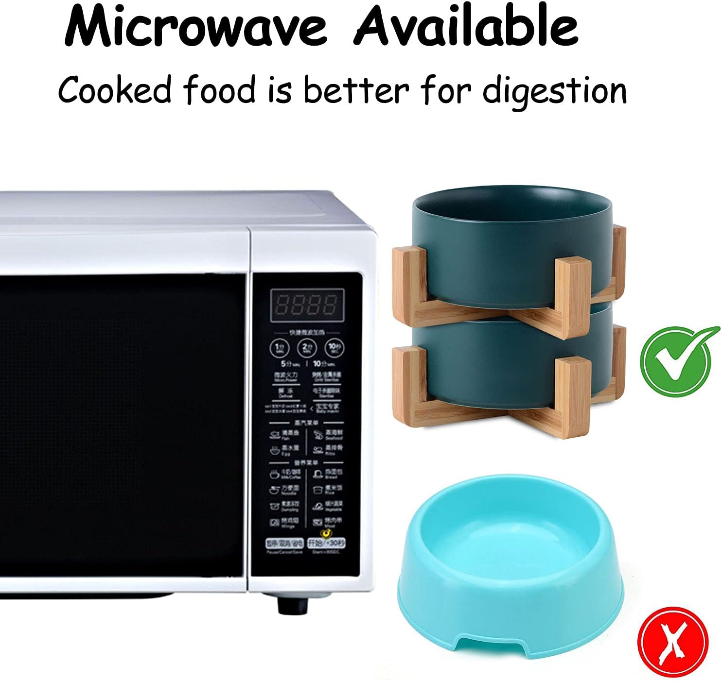 • DISHWASHER MICROWAVE SAFE - Ceramic pet bowls is made of Porcelain Ceramic with wood frame to keep from sliding on the floor. Ceramic cat dog bowls are high temperature ceramic, non-toxic durable. and the cat dog food water bowls conveniently dishwasherable so it can be easily cleaned. No Fuss.