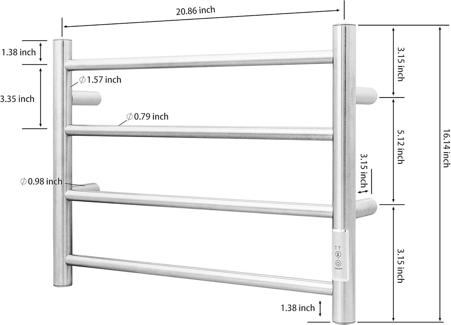 • Premium Quality with Elegant Look: The bath towel warmer is made of durable 304 stainless steel, easy to clean and durable use. IP56 Waterproof standard and wall-mounted design maximizes your floor space.