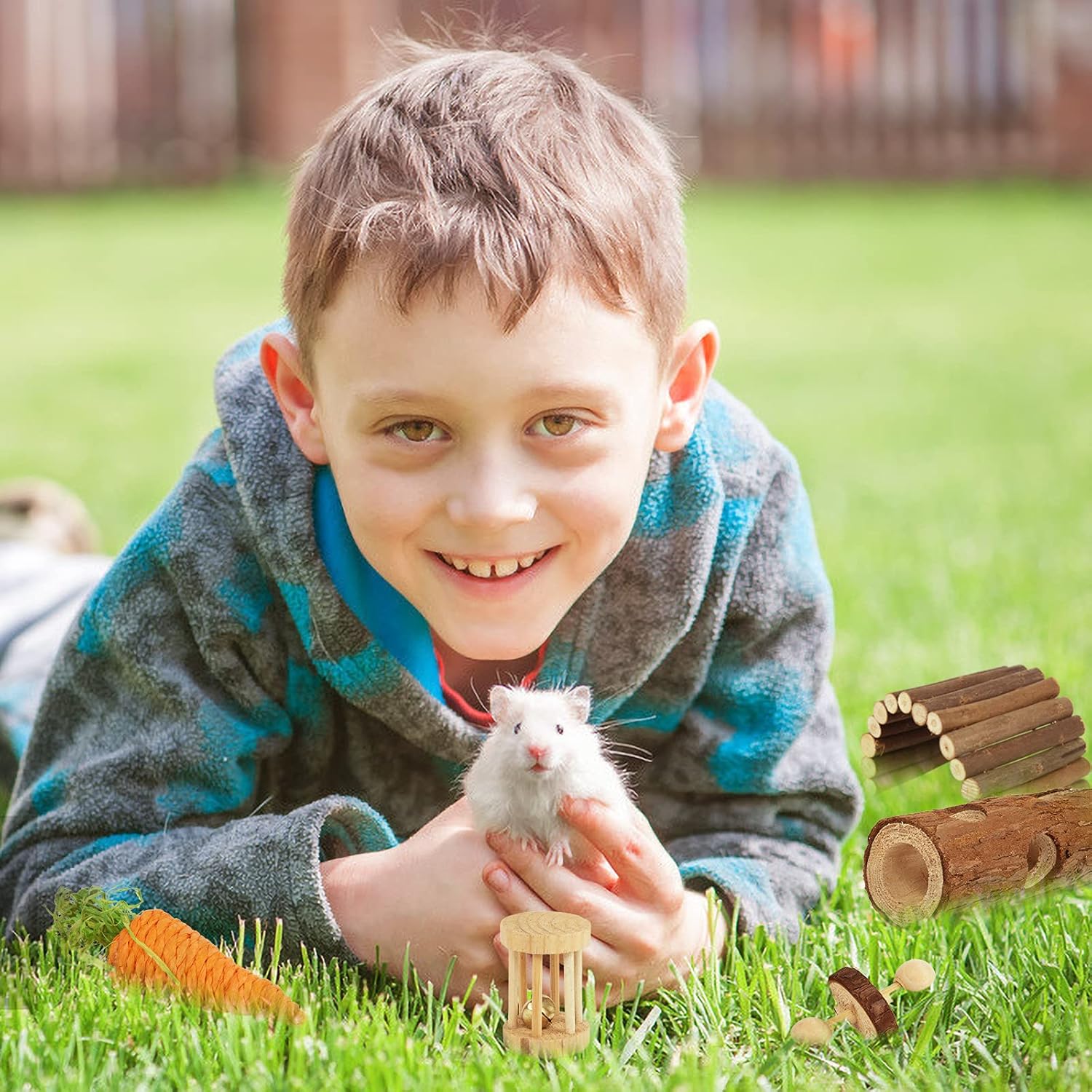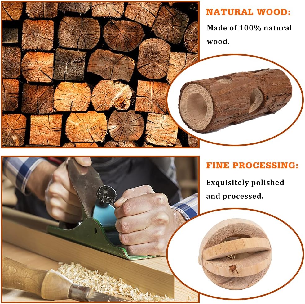• 【Natural&Safe】Our hamster toys are made of 100% natural wood, safe and durable for chewing and biting. Let your pets to have a lot of fun in their own place. Natural and handmade rodent toys for your pets.