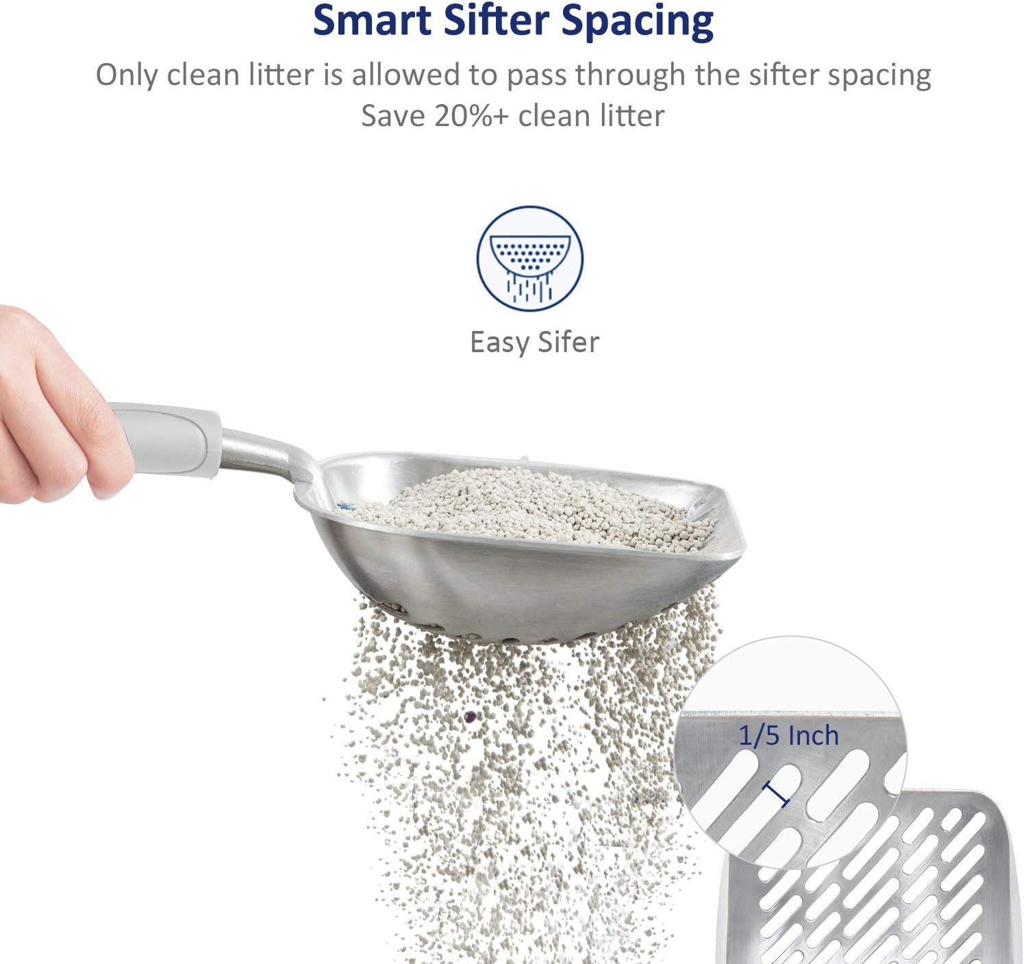 • [Features]: Deep Shovel Sifter was carefully developed by cat owners, WePet made this scooper with heavy duty quality, itโ€™s durable, aluminum alloy body. The body is waterproof and very easy to clean, rust-resistant and corrosion resistant. Itโ€™s highly recommended by cat lovers for everyday use.