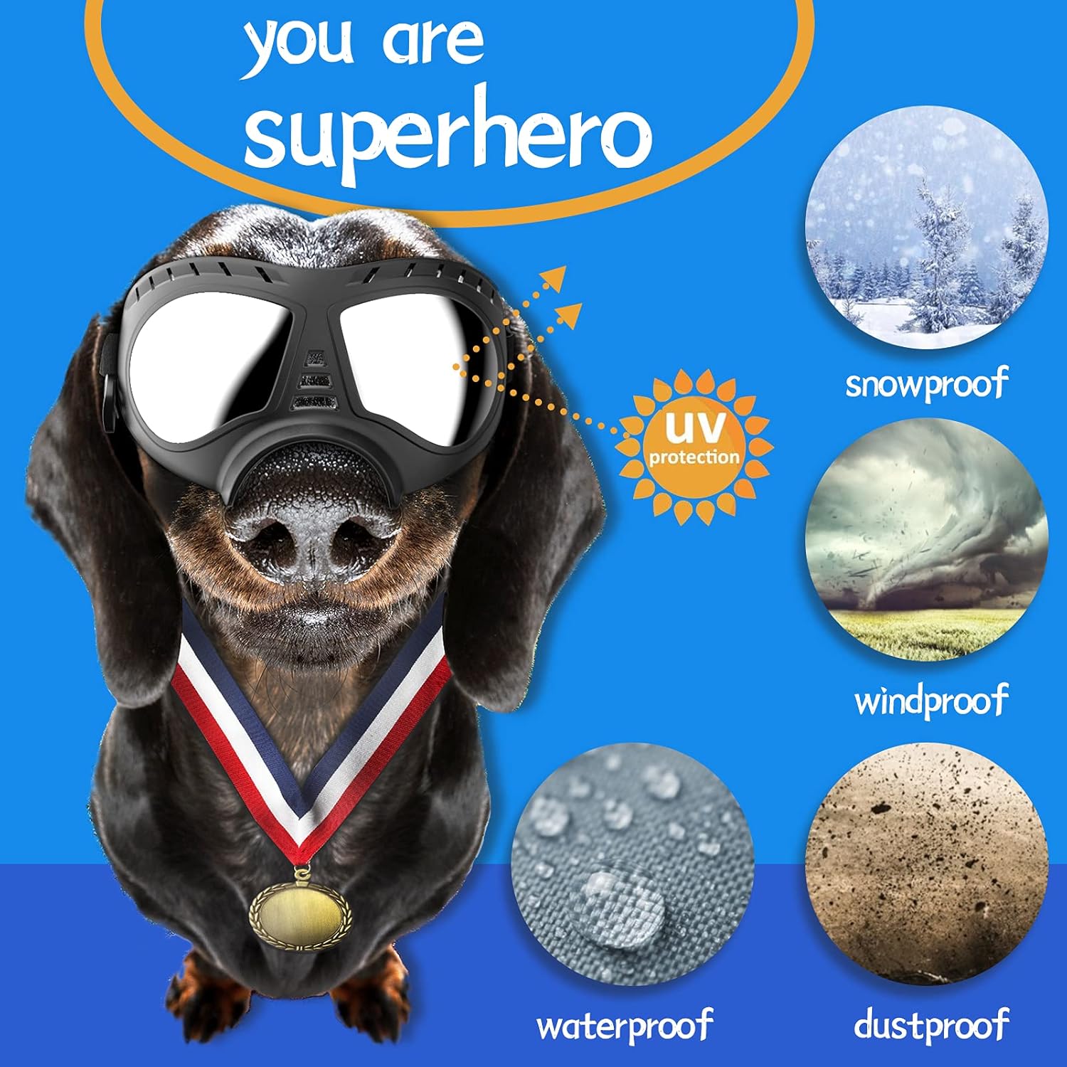 • [ Nice View ]: Wide goggles can stay in the dog's head pretty well, and provide a good view, the soft frame won't hurt the fur on the dog's face and eyes, and more comfortable for your dog to put-on.