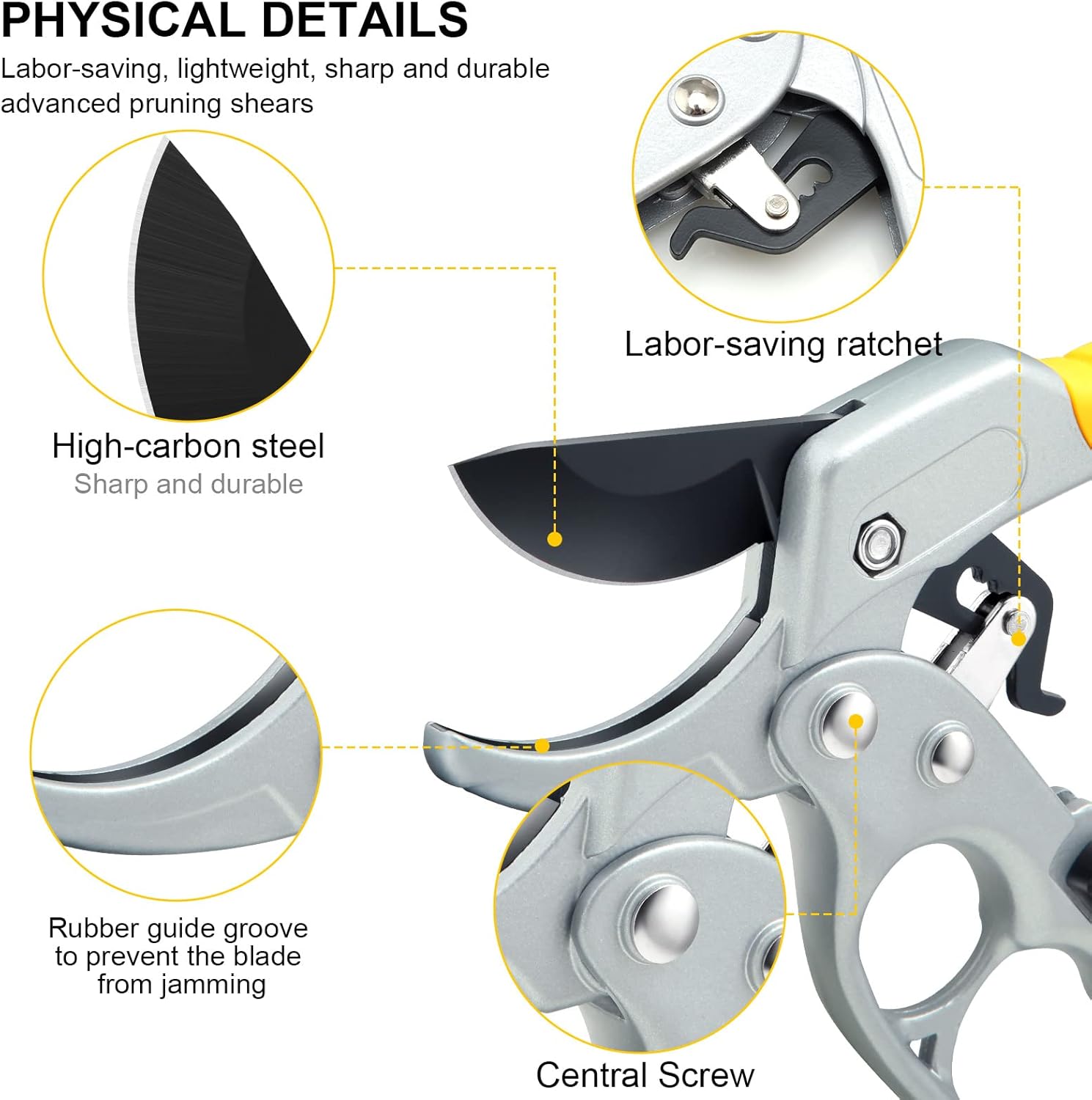- 🎁EASY TO OPERATE AND EFFECTIVE LOCKING: The scissors are reliable and easy to use. They feel comfortable and durable, suitable for a variety of cutting tasks; Excellent ability to handle difficult tasks such as cutting grass, trimming overgrowth and cutting large diameter branches.
