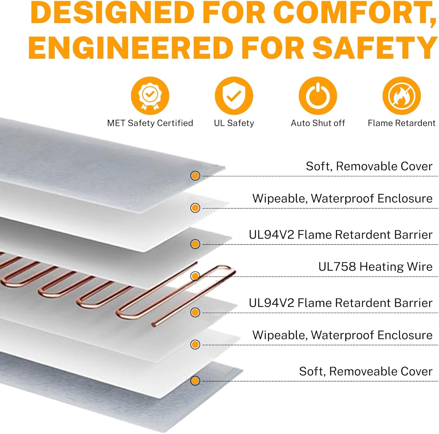 • Built for durability and safety with a machine washable cover, UL-recognized heating wire & 7-layer protection to prevent burns and overheating.