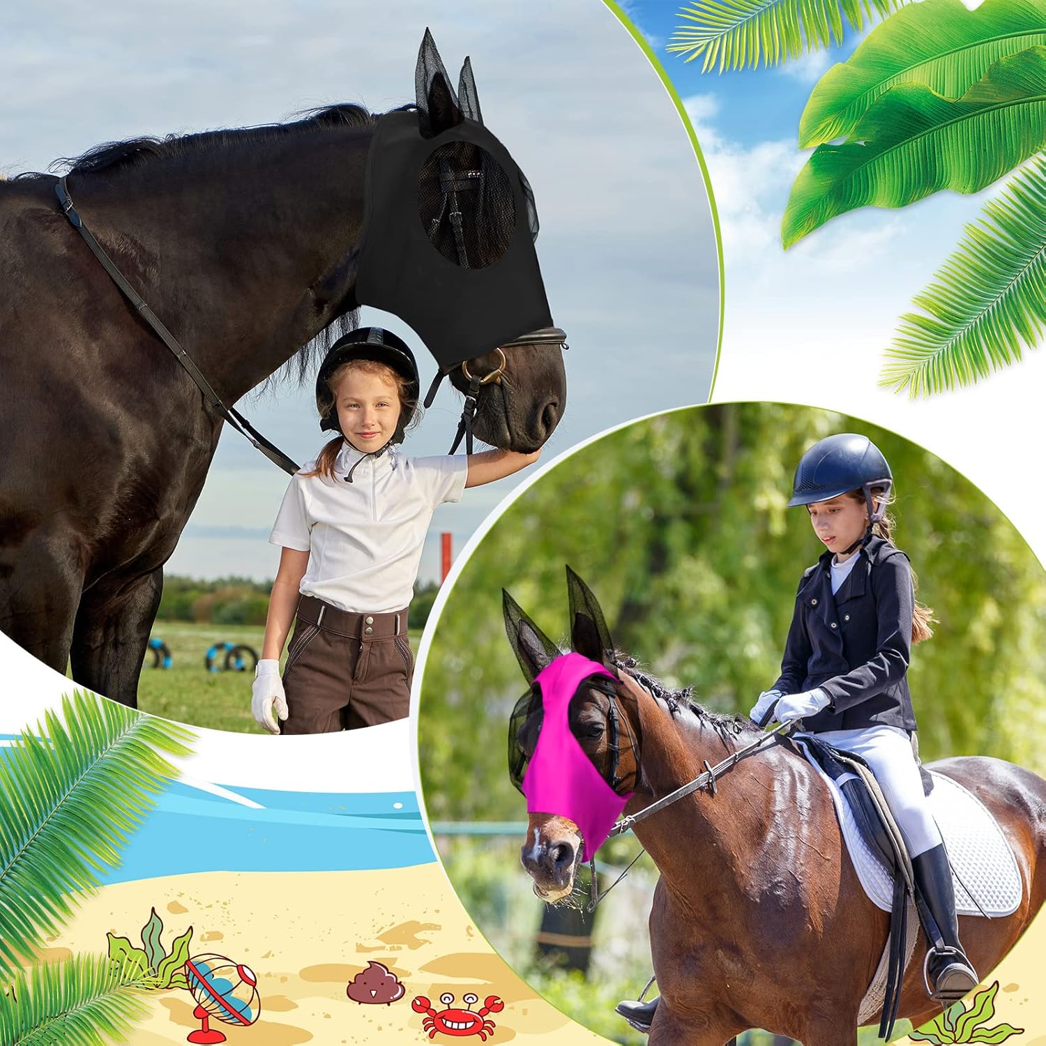 Frienda 4 Pcs Horse Fly Masks with Ears Head Fly Masks for Horses Smooth Elastic UV Protection Cover from Summer Insect Pests(Large,Purple, Blue, Pink, Black)