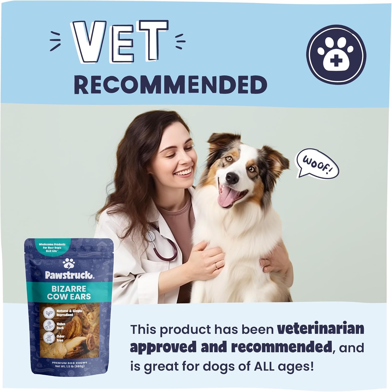 Pawstruck Natural Bizarre Cow Ears Bargain Bag – Rawhide-Free, Highly Digestible, Low Calorie & Long-Lasting Chew Treat for All Breeds – 1.5 lb Bag