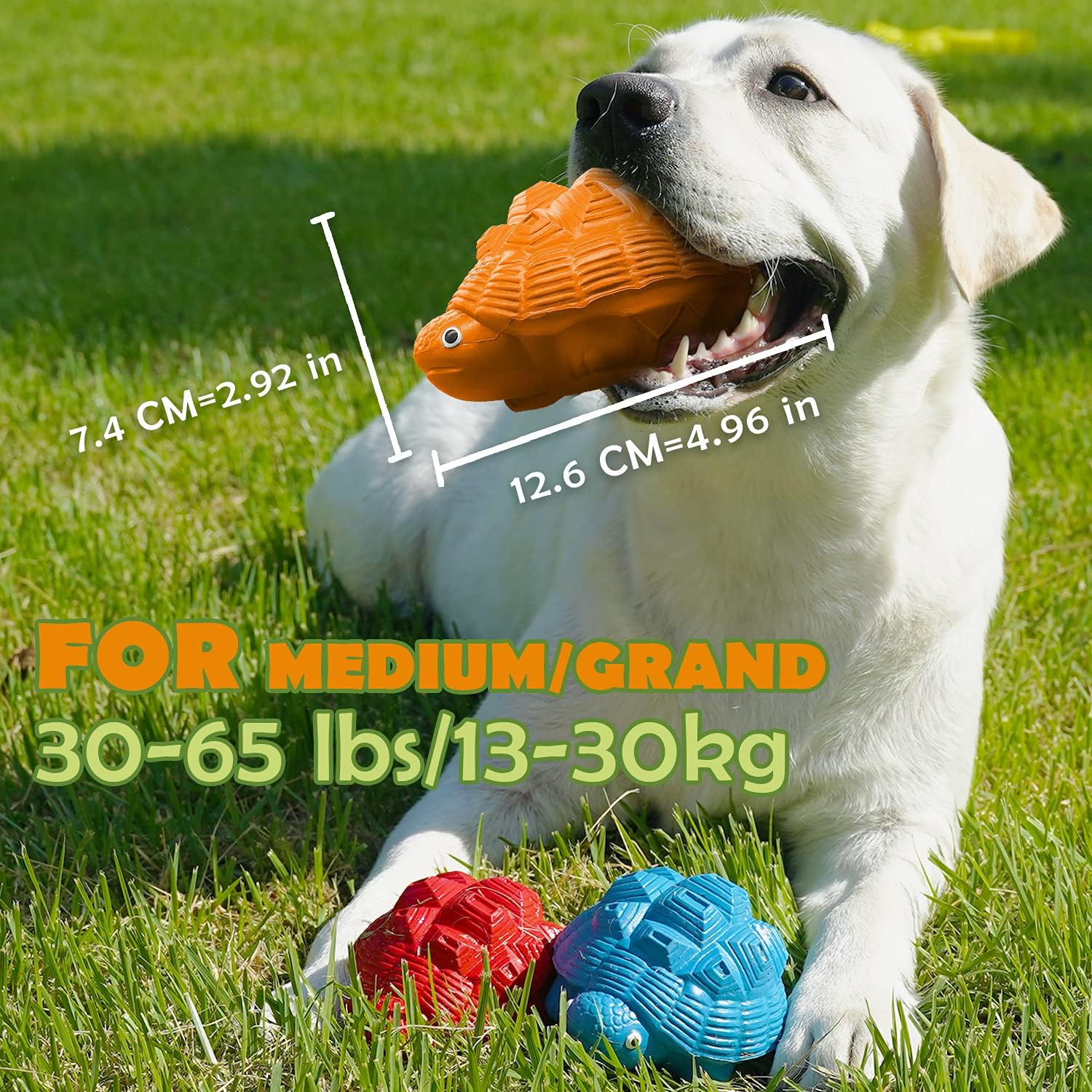 • 【Squeaky Dog Toys】Comes with a durable squeaker inside—a sound that dogs adore, adding extra excitement to their play,The variety of shapes and molar bumps are specifically crafted for cleaning different dental surfaces. These features, coupled with a delicious beef flavor, ensure that your furry friend will have endless fun while promoting strong jaw muscles.The squeaky delight ensures endless entertainment, making the squeaker turtle your pet’s new favorite.