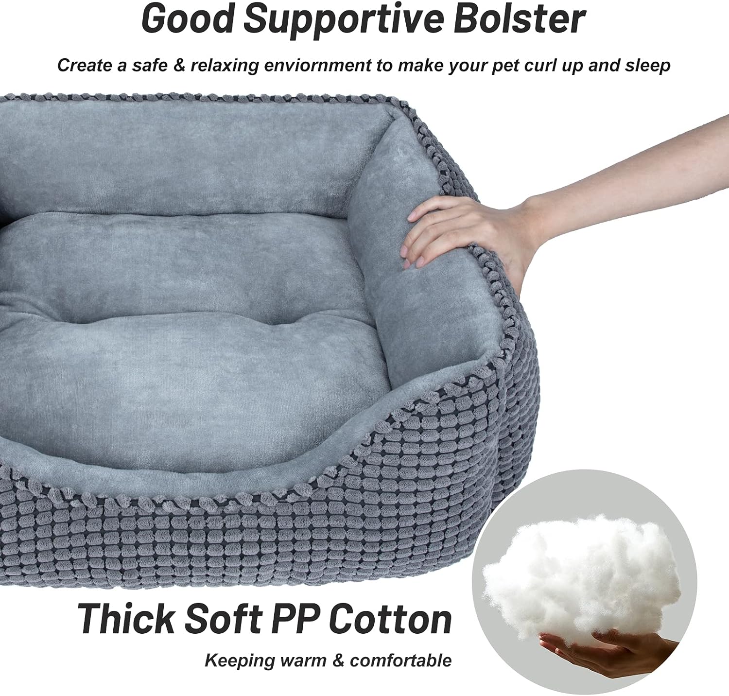 MIXJOY Dog Bed for Large Medium Small Dogs, Rectangle Washable Sleeping Puppy Bed, Soft Calming Cat Beds for Indoor Cats, Orthopedic Pet Sofa Bed, Anti-Slip Bottom with Multiple Size (20'', Grey)