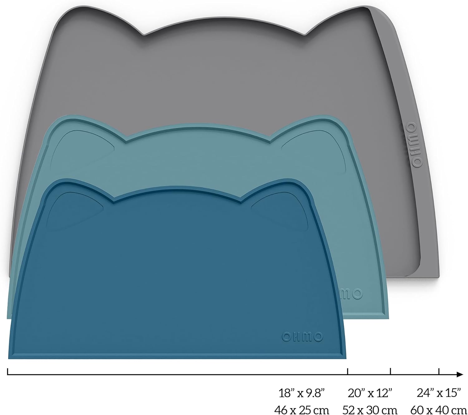 OHMO - Cat Food Mat, Silicone Pet Feeding Mat for Floor Non-Skid Waterproof Dog Water Bowl Tray, Easy to Clean Pet Placemat (Teal, 18 * 9.8'')