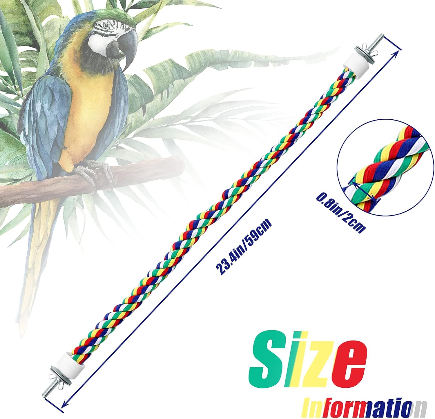 • Exercise the strength of the bird's legs: the rope perches for bird cages can help the parrot to fly and jump in the air, and can exercise the parrot's leg strength and jumping ability, nice exercising tool for your birds