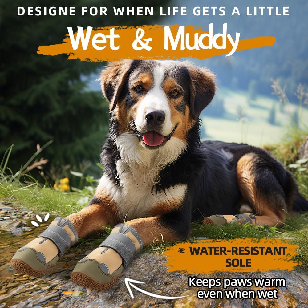 Dog Shoes for Large Dogs, Medium Dog Boots & Paw Protectors for Hardwood Floors, Outdoor Dog Booties for Hot Pavement Winter Snow Hiking, Waterproof Dog Shoes with Reflective Strips Size 7