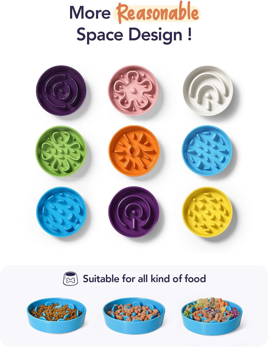 • Slow Down Eating, Bring Dog A Healthy Diet: Fast-eating dogs experience bloat, regurgitation, and obesity easily. Our slow feeder dog bowl design with the ridges and maze pattern helps your dog to eat slower than 10 times. Your dog could change his overeating behavior through a challenge and fun mealtime