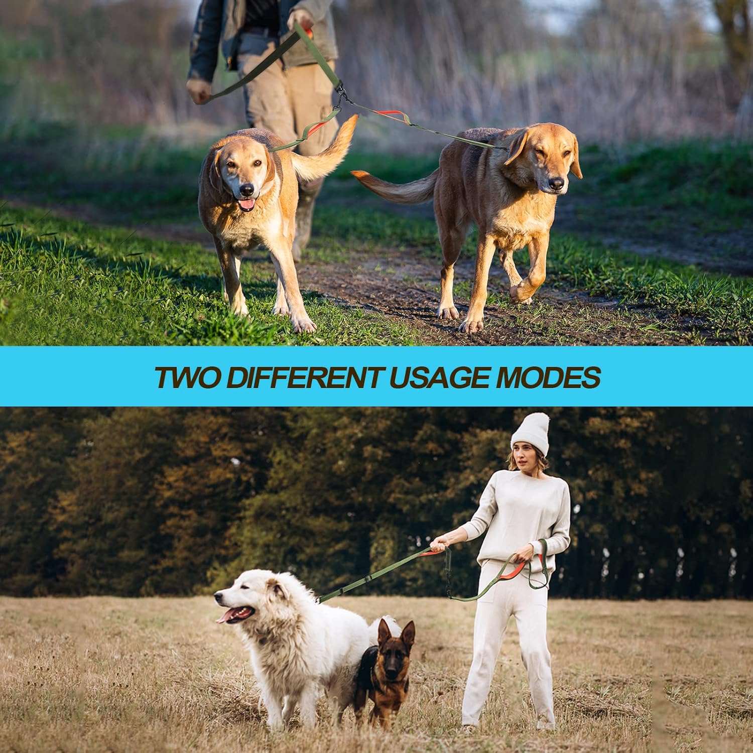• No Tangle Double Dog Leash: 360ยฐ swivel clasps help to keep your dogs from getting tangled together. No need to worry about getting twisted two dog leash when dogs switch sides