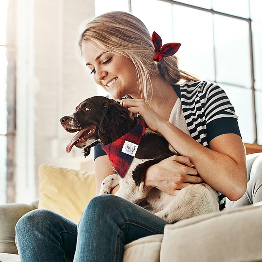 • Matching Dog and Owner Clothes - It’s full of love when your pets is wearing the buffalo dog bandanas and you are wearing the bow scrunchies. When traveling, sleeping, taking photos or daily walking, adorable dog scarf and plaid scrunchie is a pretty accessories. The scrunchie can be worn as a wrist accessory and hold your hair. Beautiful dog drool bibs and bow scrunchie with red plaid pattern, it’s nice photo props.