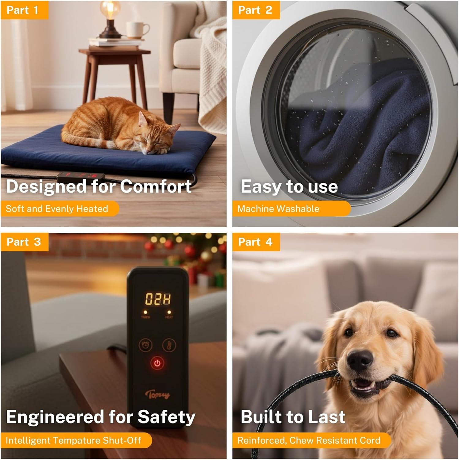 • ❤【Unique Heating Pad Design】Protect pets from chewing wires with dual resistant cord protection to ensure safety. Ultra-soft, machine-washable cover for comfort and convenience. If the inner pad becomes dirty, you just need to wipe the inner pad with a damp cloth instead of soaking it in water.