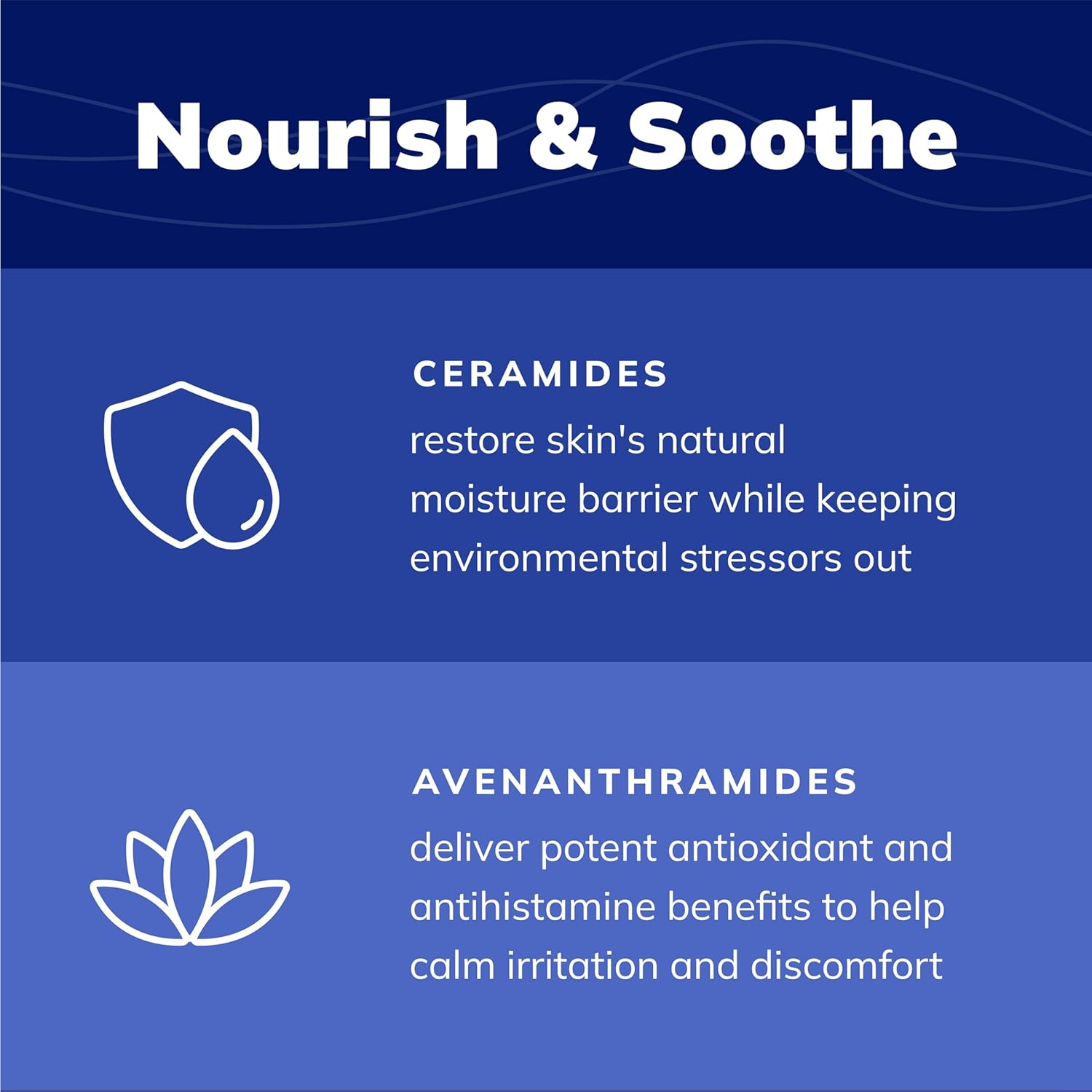 • ๐๐ซ๐จ๐ฆ๐จ๐ญ๐ž๐ฌ ๐’๐ค๐ข๐ง ๐๐š๐ซ๐ซ๐ข๐ž๐ซ ๐ˆ๐ง๐ญ๐ž๐ ๐ซ๐ข๐ญ๐ฒ - Enriched with ceramides and avenanthramides to help calm itching and irritation, restore moisture, and support the skinโ€™s natural immune system.