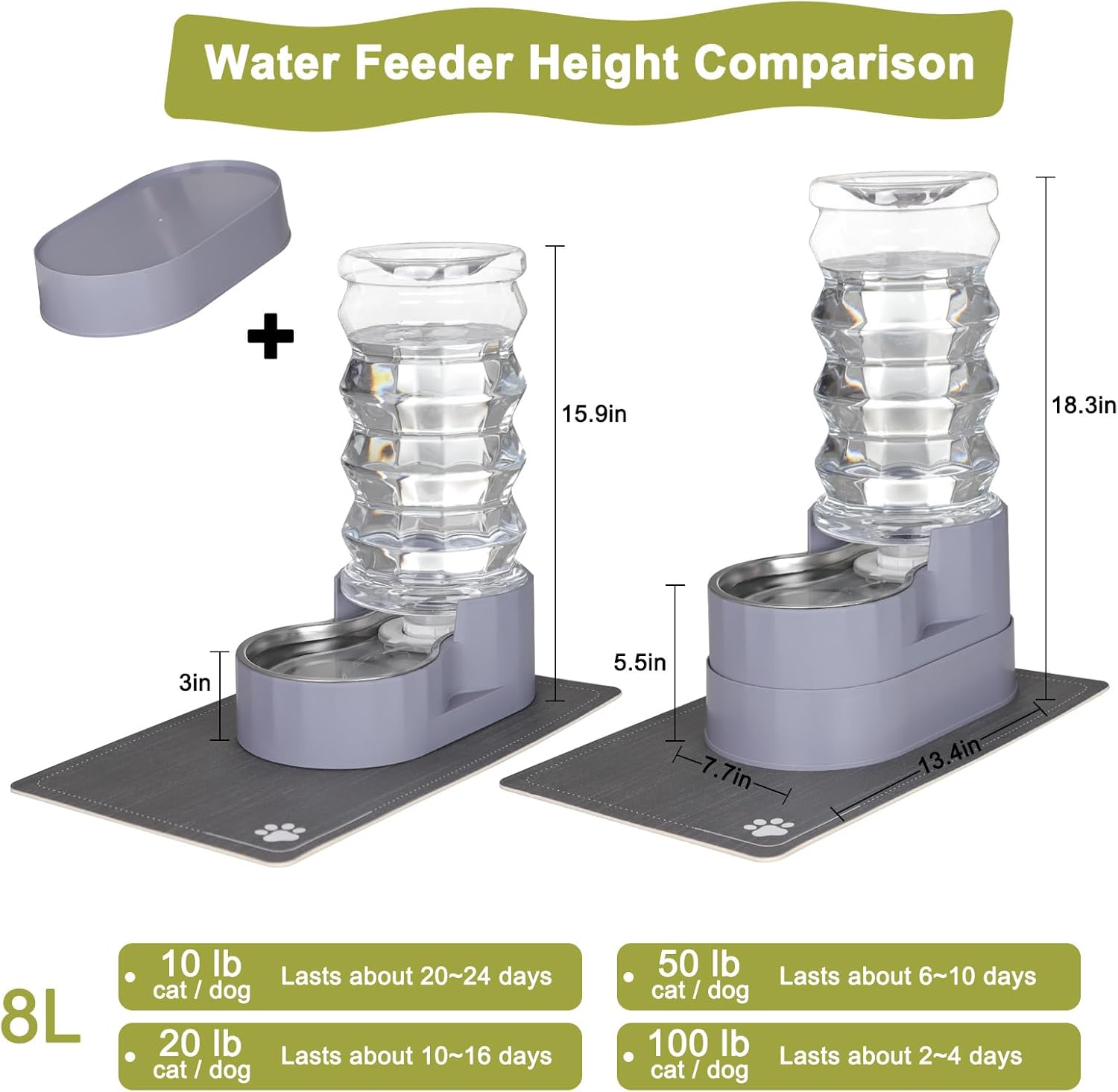 RIZZARI Large Water Dispenser for Dogs: 8L Automatic Stainless Steel Gray Gravity Raised Pet Feeder for Pet Dogs Indoor/Outdoor