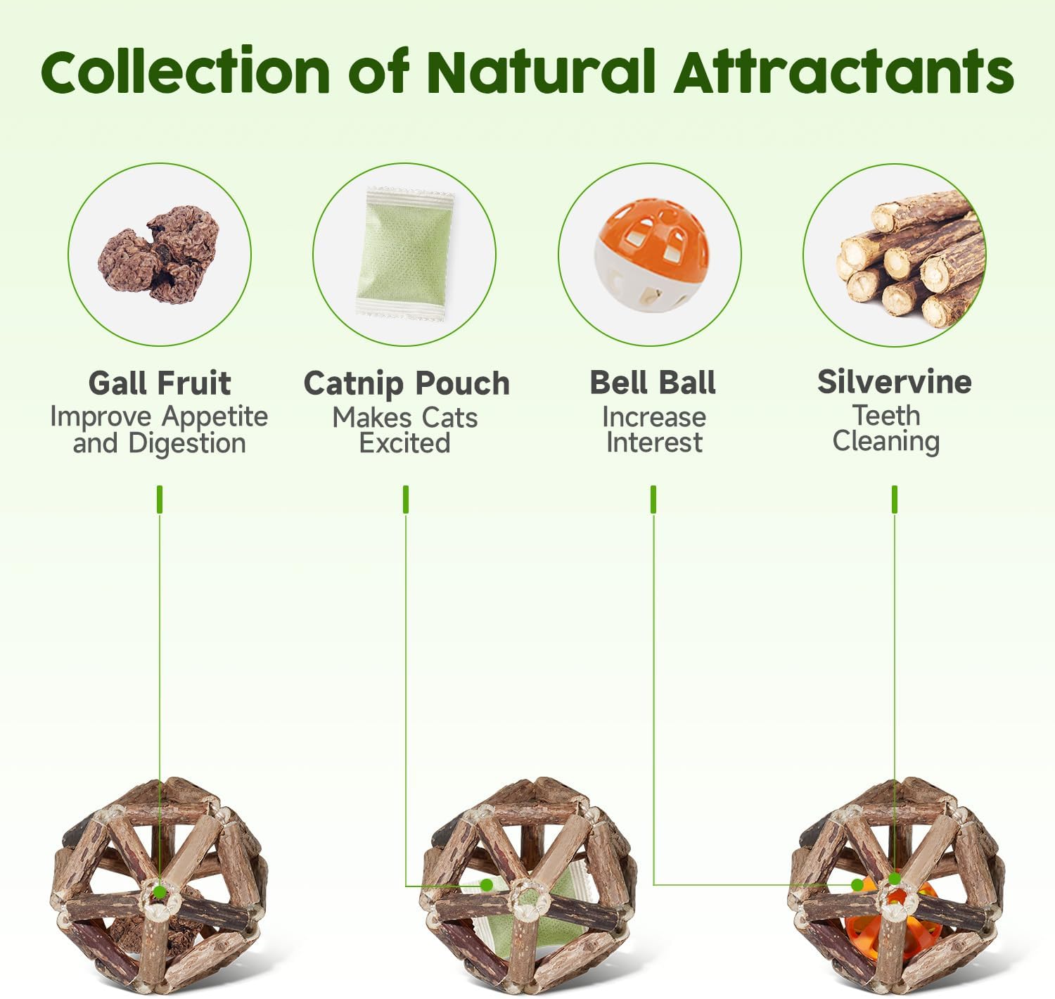 • 【Promote Digestion】Catnip and silvervine contain rich dietary fiber, which promote gastrointestinal motility, help get rid of hairballs and improve digestion. If your cats lose interest after playing for some time, you can cut off the exterior of silvervine sticks to intensify aroma, making the balls as appealing as new toys