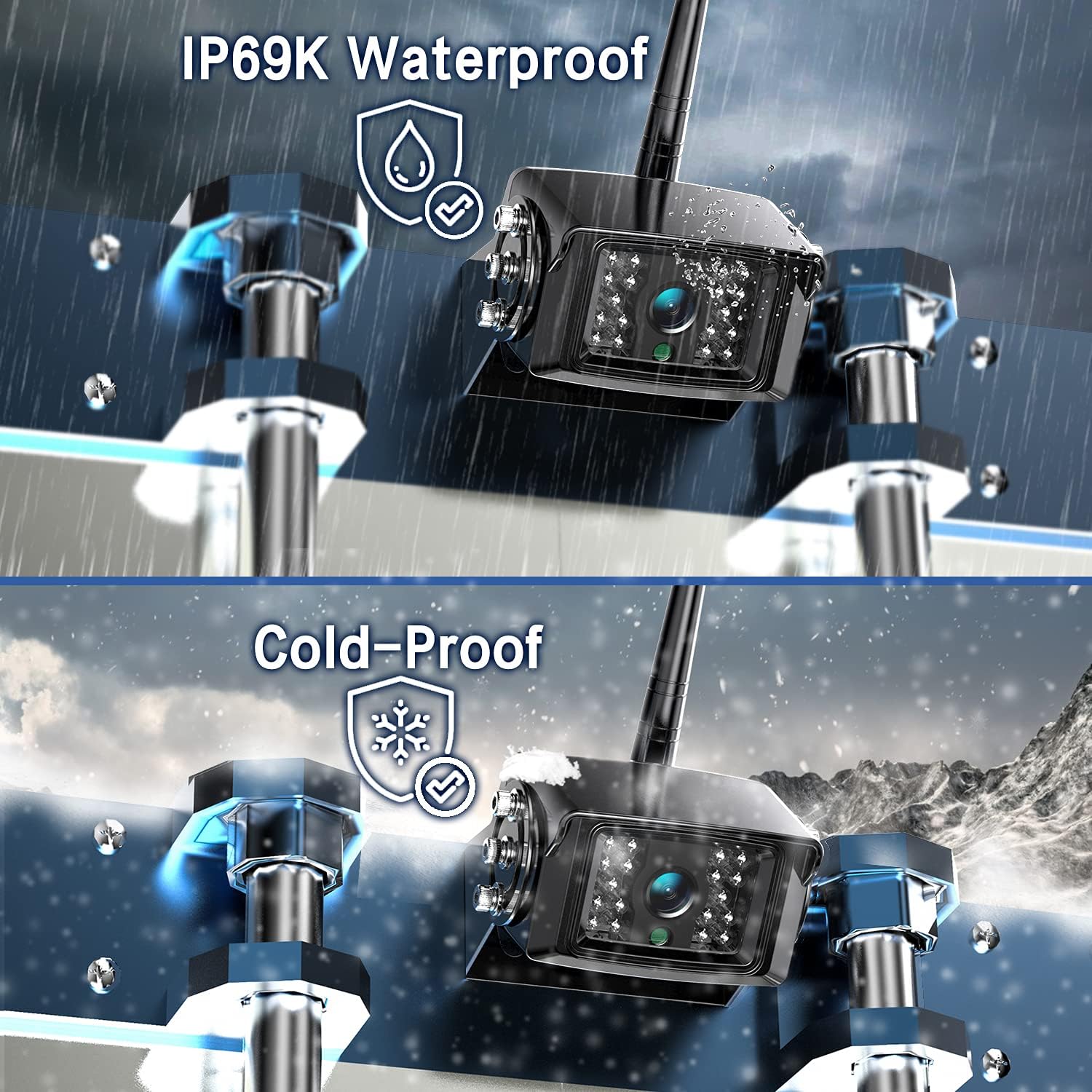 - ใIP69 Waterproof & Loop RecordใWhether you're driving on a rainy-day, snowy-day, or foggy-day, ZEROXCLUB IP69K Waterproof Backup Camera can handle it. Buit-in loop record function, the wireless rear view camera will automatically overwrite the oldest recorded video when the memory card is full, protecting your safety and security while driving, backuping up and stationary.