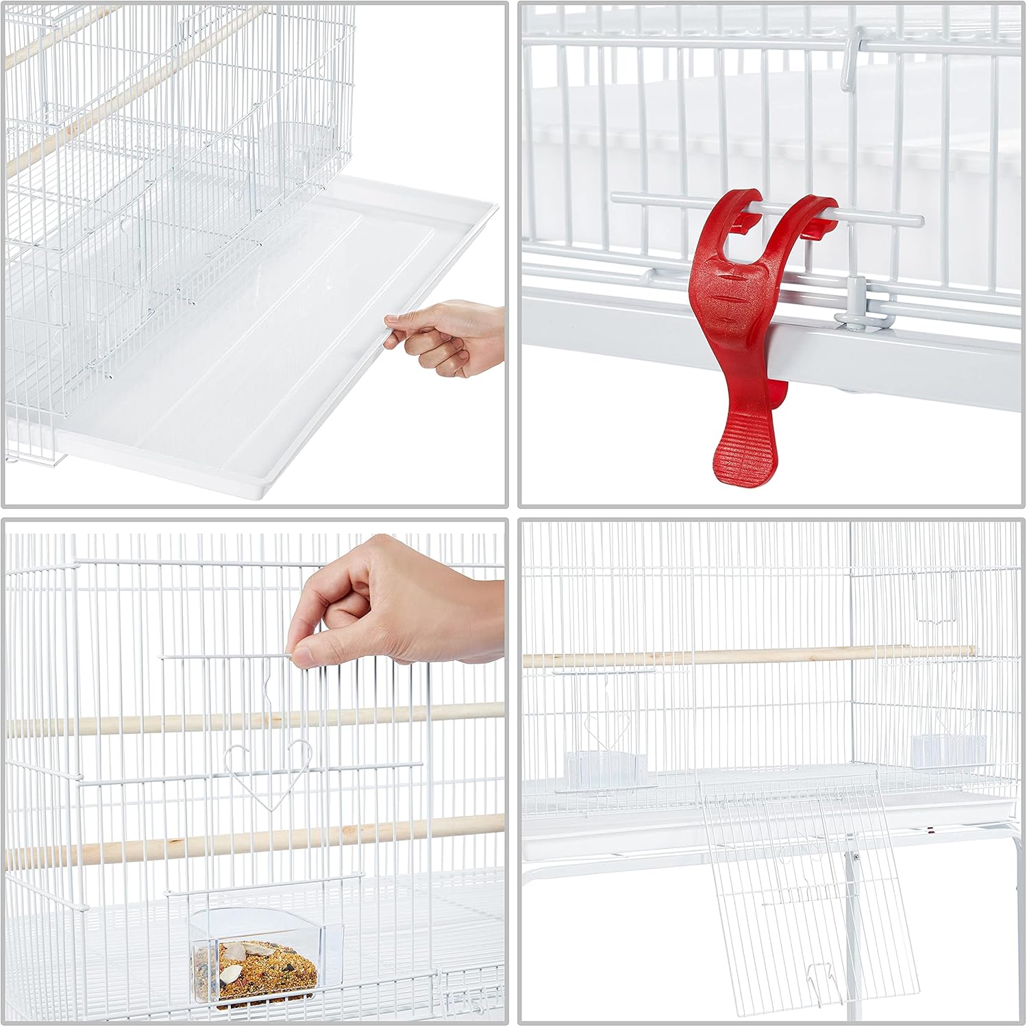 • Clean with ease: The pull-out litter tray makes cleaning much easier for pet owners. The large tray catches most of the bird droppings and spilled seeds, while birds will not directly touch the tray thanks to the grate above it
